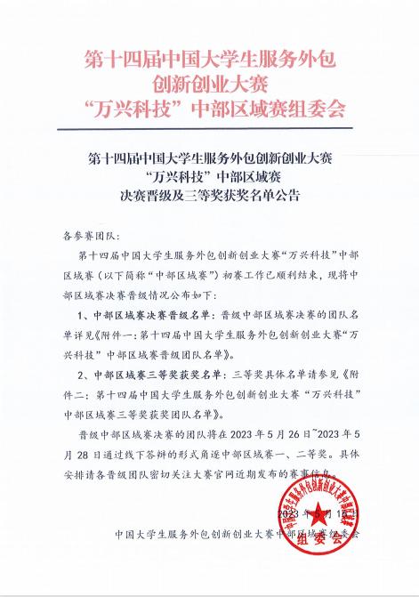 喜报!我校学子喜获第十四届中国大学生服务外包创新创业大赛中部区域赛三等奖