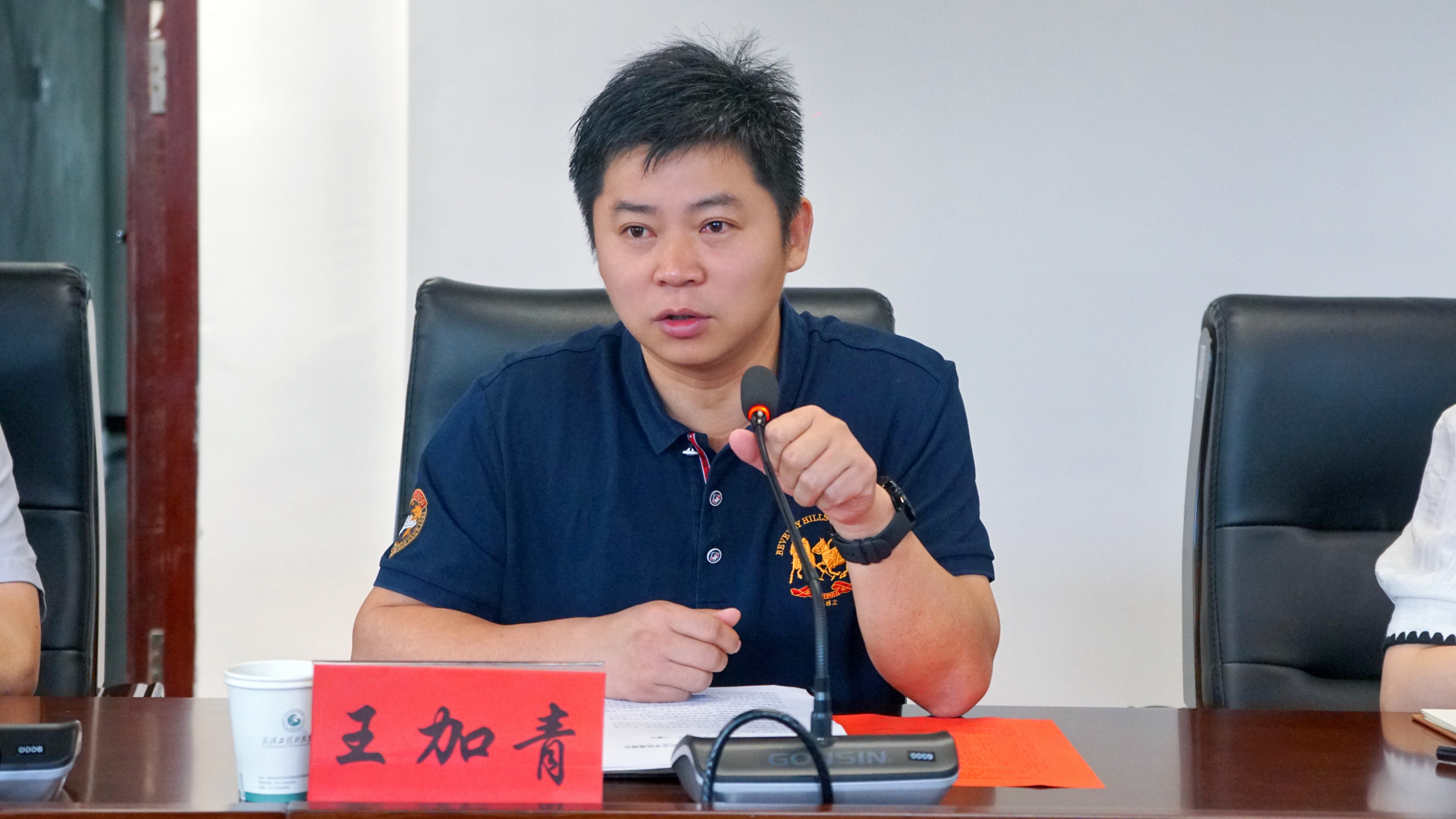 王加青致辞。他表示,企业的发展离不开学校培养人才,学院人才的培养更需要企业实践的支持,创办产业学院能更好的体现产教融合培养应用型人才。