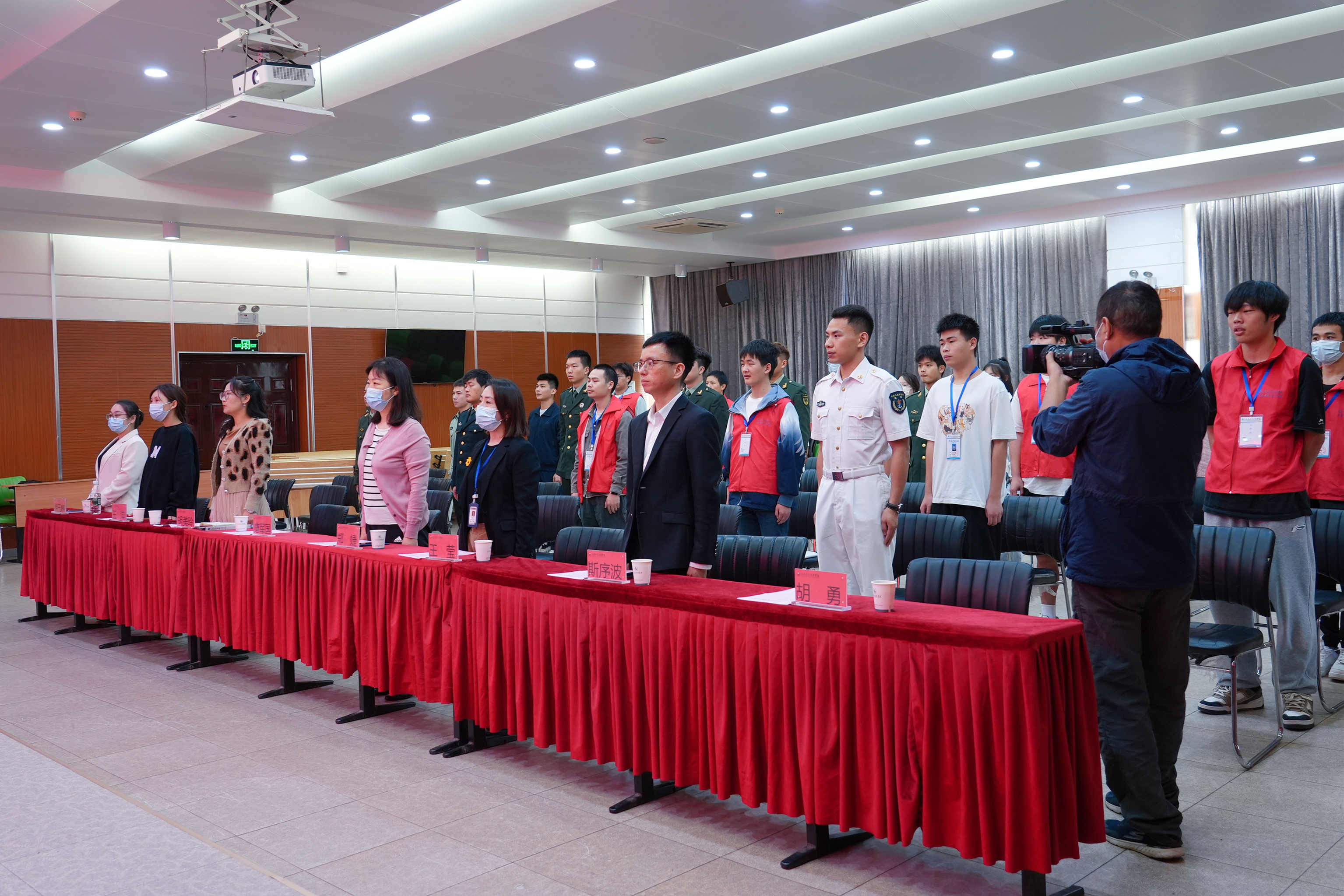 活动伊始,全体起立,奏唱国歌。