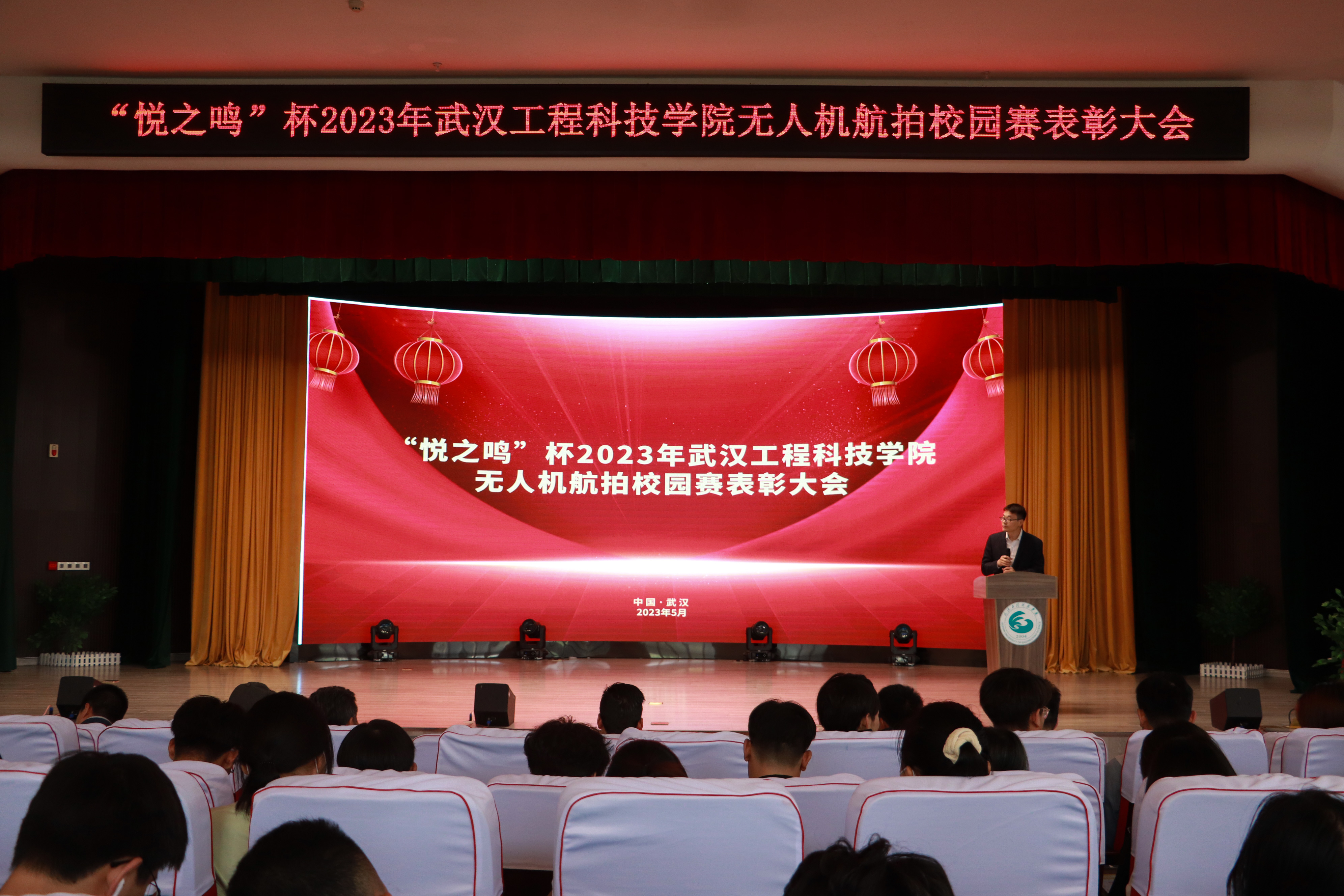 吴夏宣读《关于“悦之鸣”杯2023年武汉工程科技学院无人机航拍校园赛获奖作品的表彰决定》。