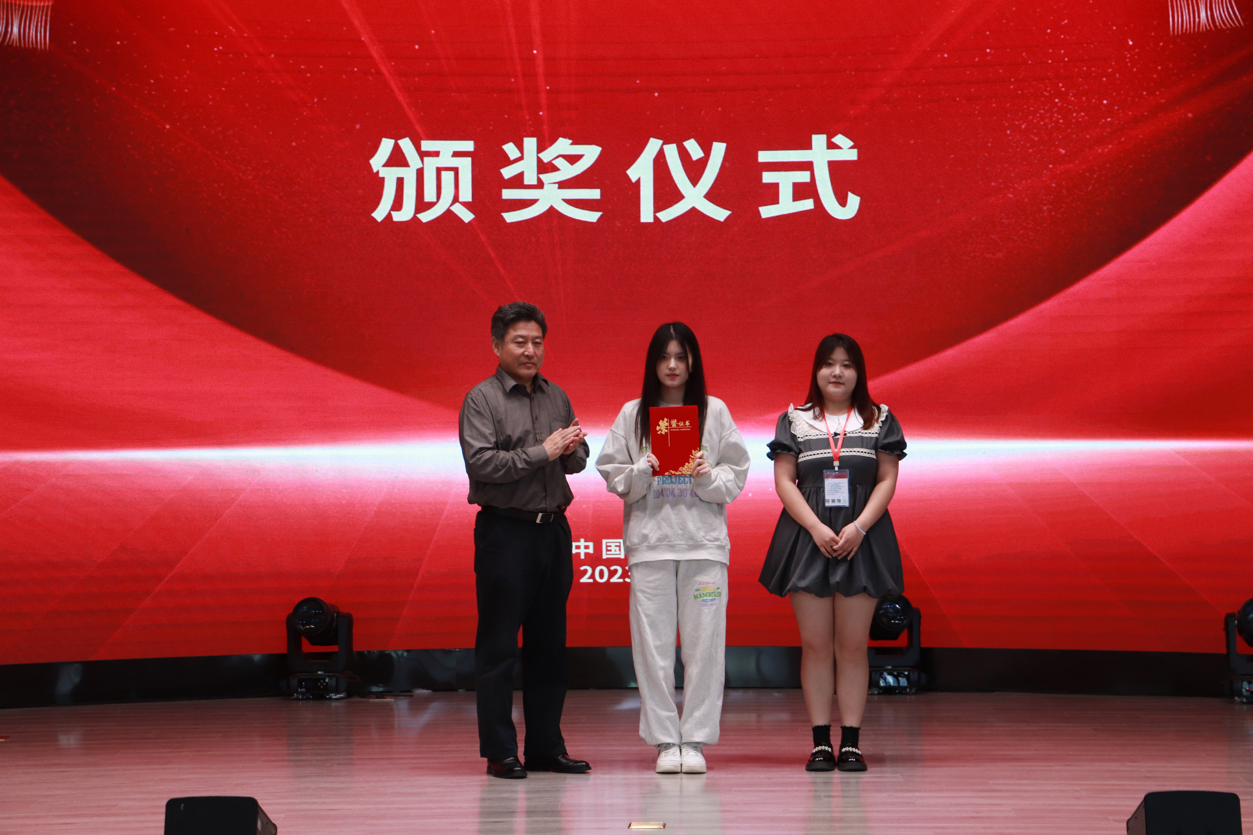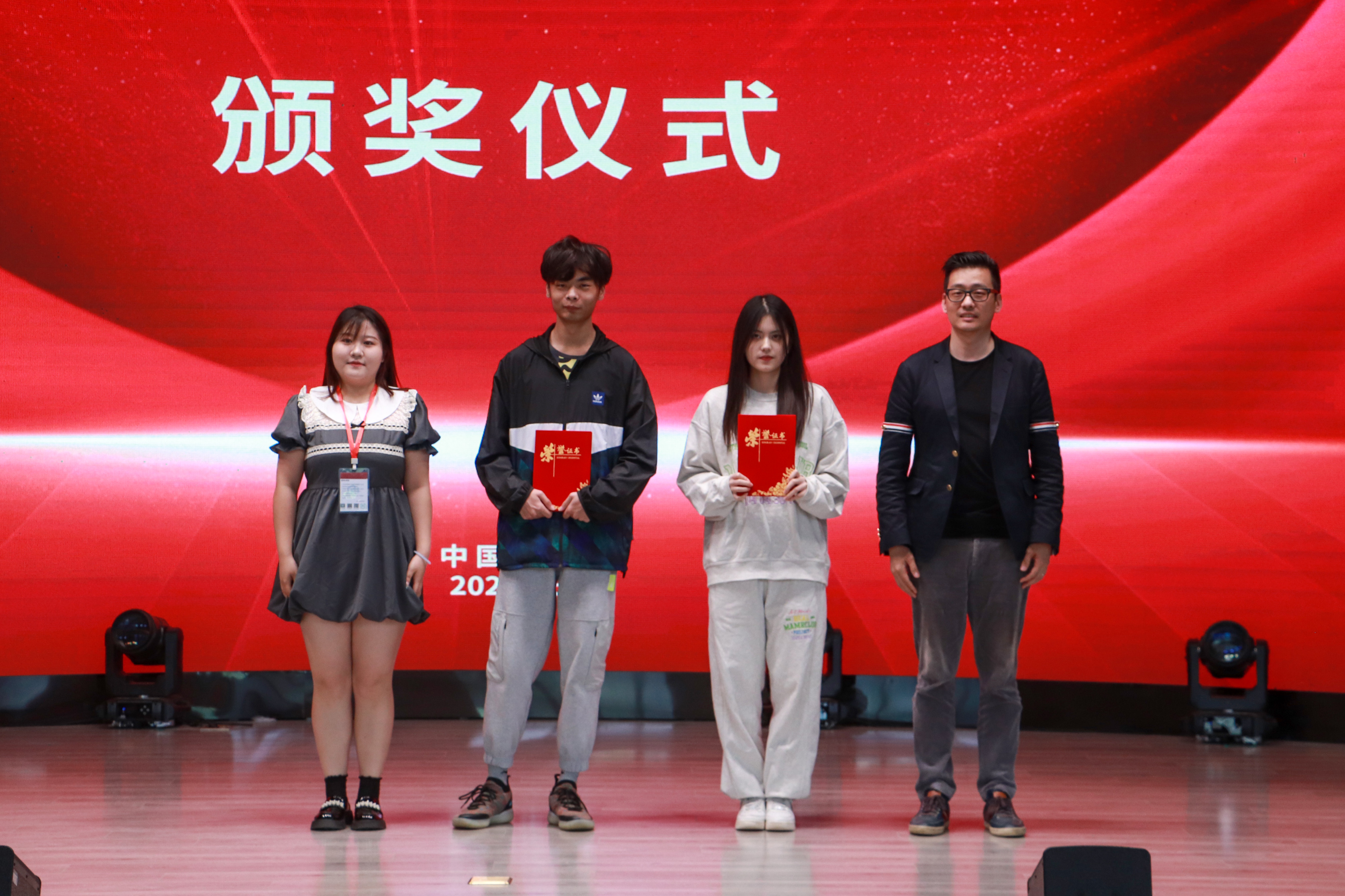 艺术与传媒学院教师夏峰和杨竹音为视频组三等奖获奖人员颁奖。