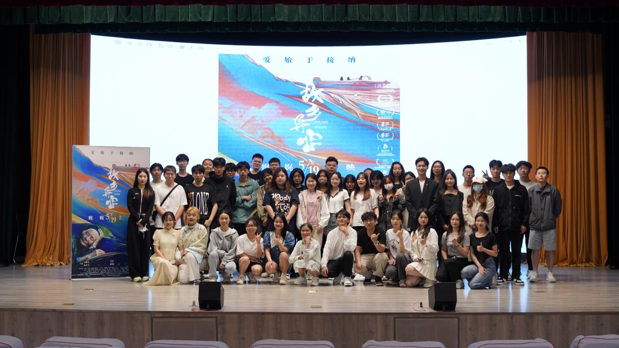 本网讯(通讯员 计了了 图片 赵懿轩 孙阳)近日,我校艺术与传媒学院在学校图书馆五区报告厅举行了由杨竞、冯子扬、李庆欣、肖肖担任制片人,杨超监制,新锐导演李崧鸣编剧并执导,叶麒圣、慈婉彤、章关飞、陈帮会主演的电影《故乡异客》首映礼,艺术与传媒学院副院长魏敏,表演系主任陈琪出席了此次活动。该影片已定档5月19日全国上映,这也是艺术与传媒学院首次迎来的电影路演活动。