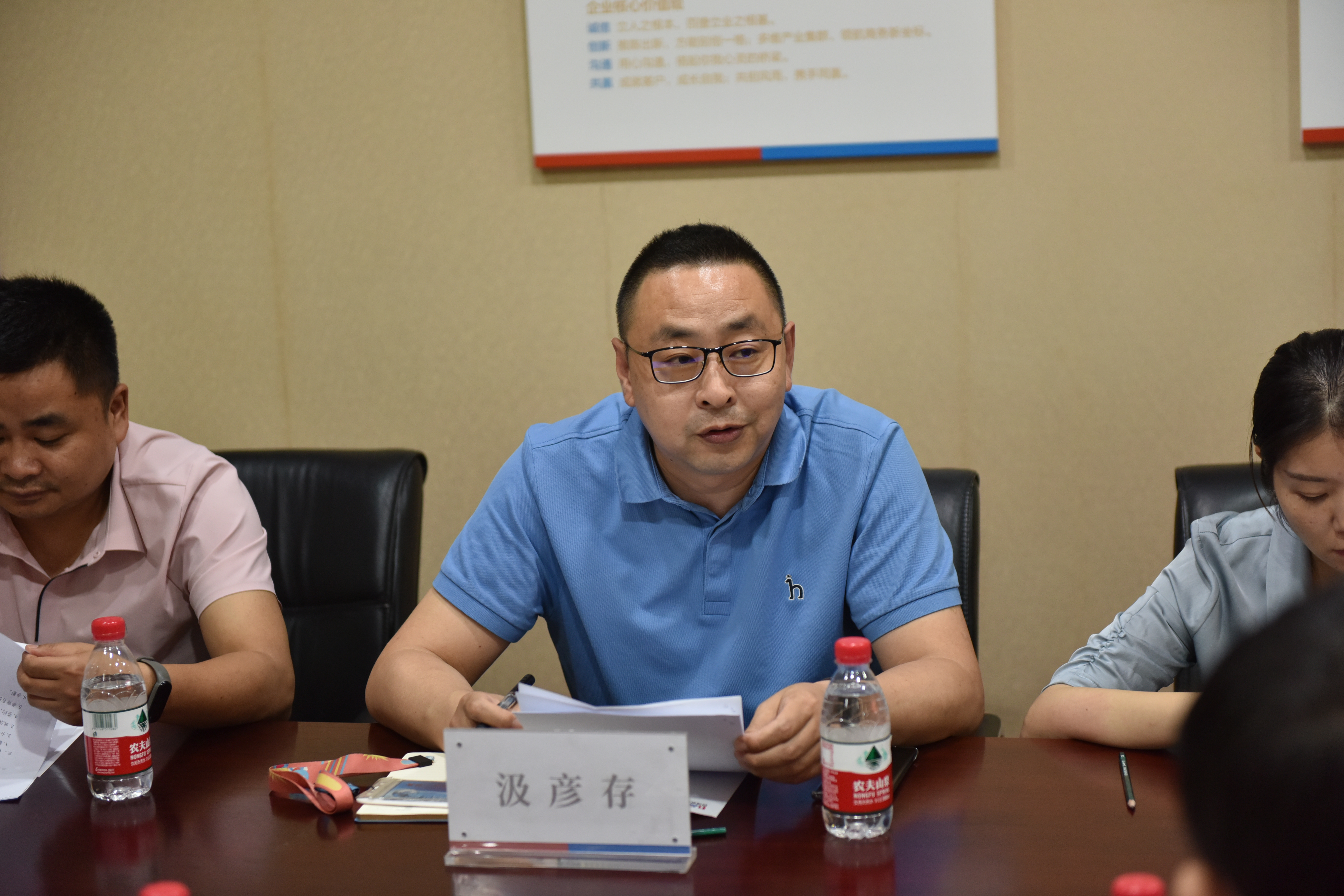 汲彦存致辞,他对我校的到访表示欢迎。他介绍了百捷集团的有关情况与当前互联网趋势,认为武汉工程科技学院与百捷集团有着良好的合作基础,希望双方能够强化合作,为双方协同创新、共同发展一起努力。