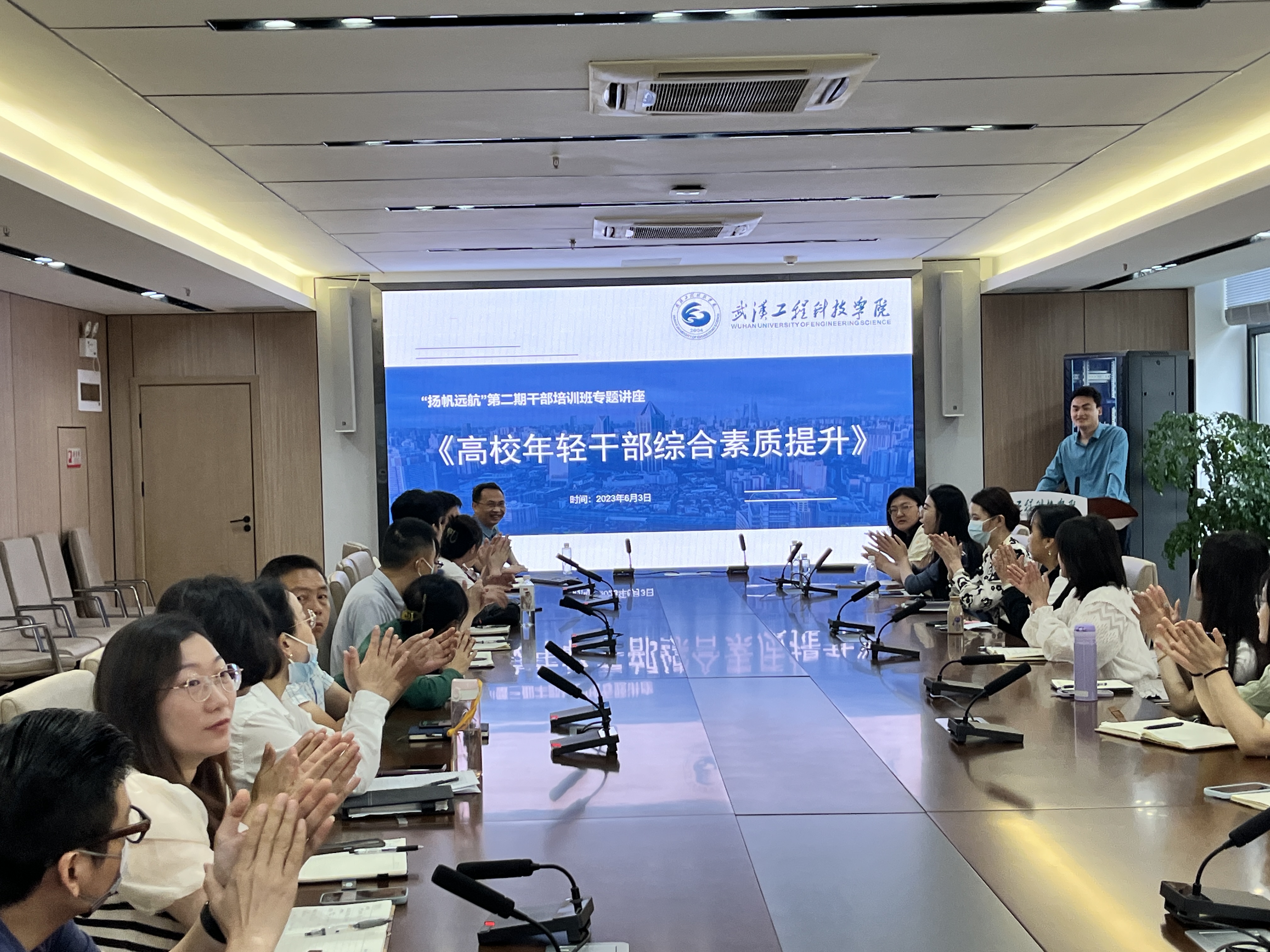 6月3日上午,武汉工程科技学院第二期干部培训班在学校综合楼1210会议室举办专题讲座。讲座邀请中南民族大学彭庆军教授作专题讲座,学校第二期干部培训班全体学员参加。讲座由学校人事处副处长湛正祥主持。