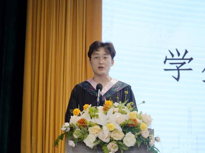 典礼伊始,优秀毕业生代表李增辉上台发言。他回望了在艺术与传媒学院的求学时光、老师的谆谆教诲和同窗的情谊,满是留恋与不舍。他表示,将时刻铭记“立德博学 笃行创新”校训精神,践行新时代青年的责任与使命,努力成为堪当民族复兴重任的时代新人。