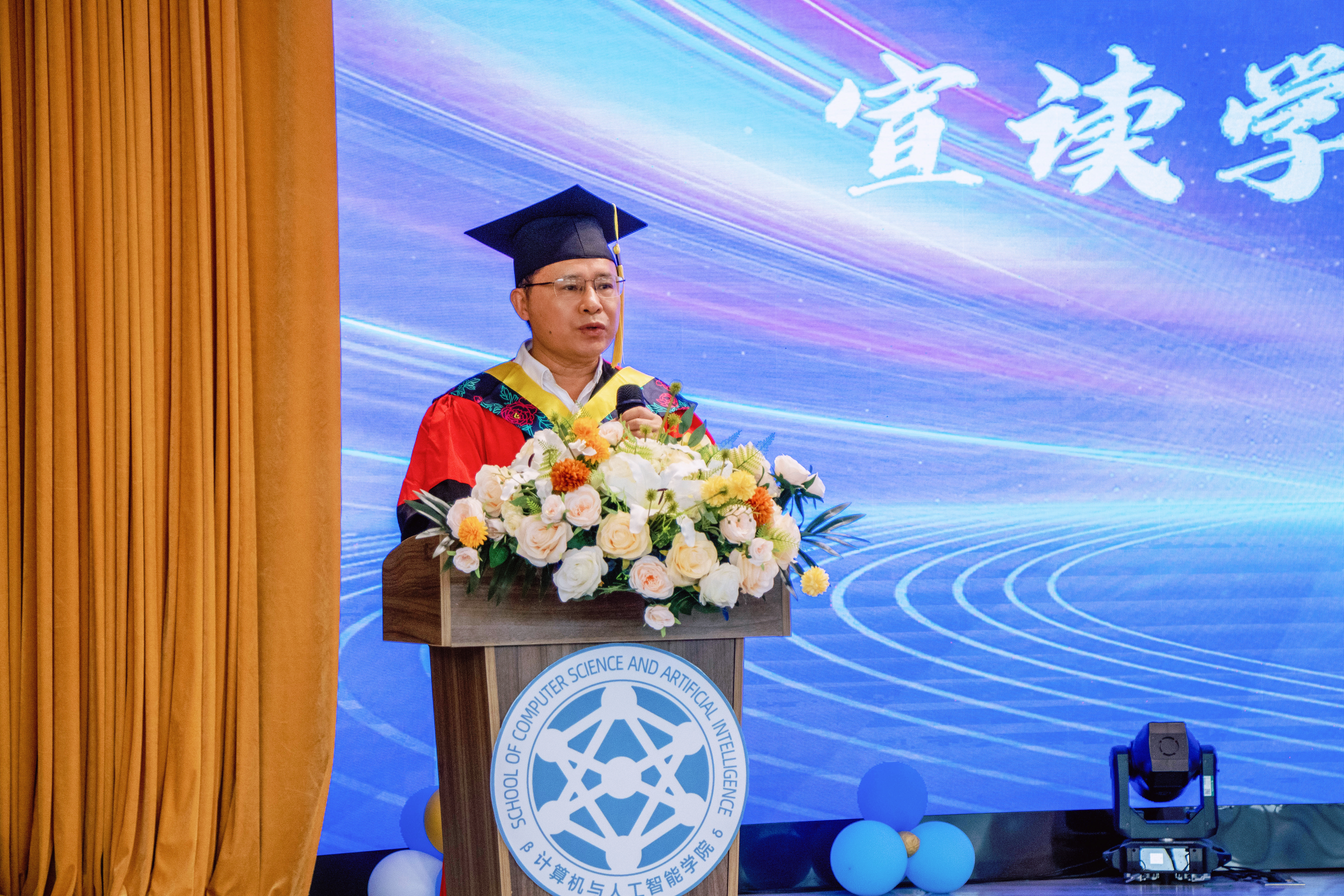 本网讯(通讯员 章璇 张朝钢)6月14日上午,我校计算机与人工智能学院2023年毕业典礼暨学位授予仪式于图书馆5区报告厅举行。我校党委副书记、校长助理唐军国,计算机与人工智能学院院长蔡之华,党总支书记兼副院长钟晓星,副院长黎丽,团总支书记张冬琦出席了典礼,学院辅导员、教师代表及2023届全体毕业生及家长代表参加了此次典礼。典礼由计算机与人工智能学院院长助理望超主持。