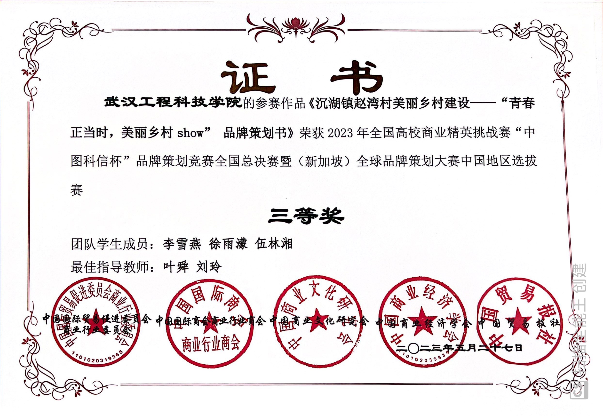 据悉,2023年全国高校商业精英挑战赛品牌策划大赛历时8个月时间,我校共推举4支队伍参加省赛,通过激烈角逐,2支队伍脱颖而出,进入全国总决赛。参赛团队聚焦乡村振兴、品牌创新为主题,分别依托“根芝林”和“沉湖镇赵湾村美丽乡村建设”进行品牌策划,经过前期调研、深入策划、比赛现场出色的阐述赢得了评委的认可。