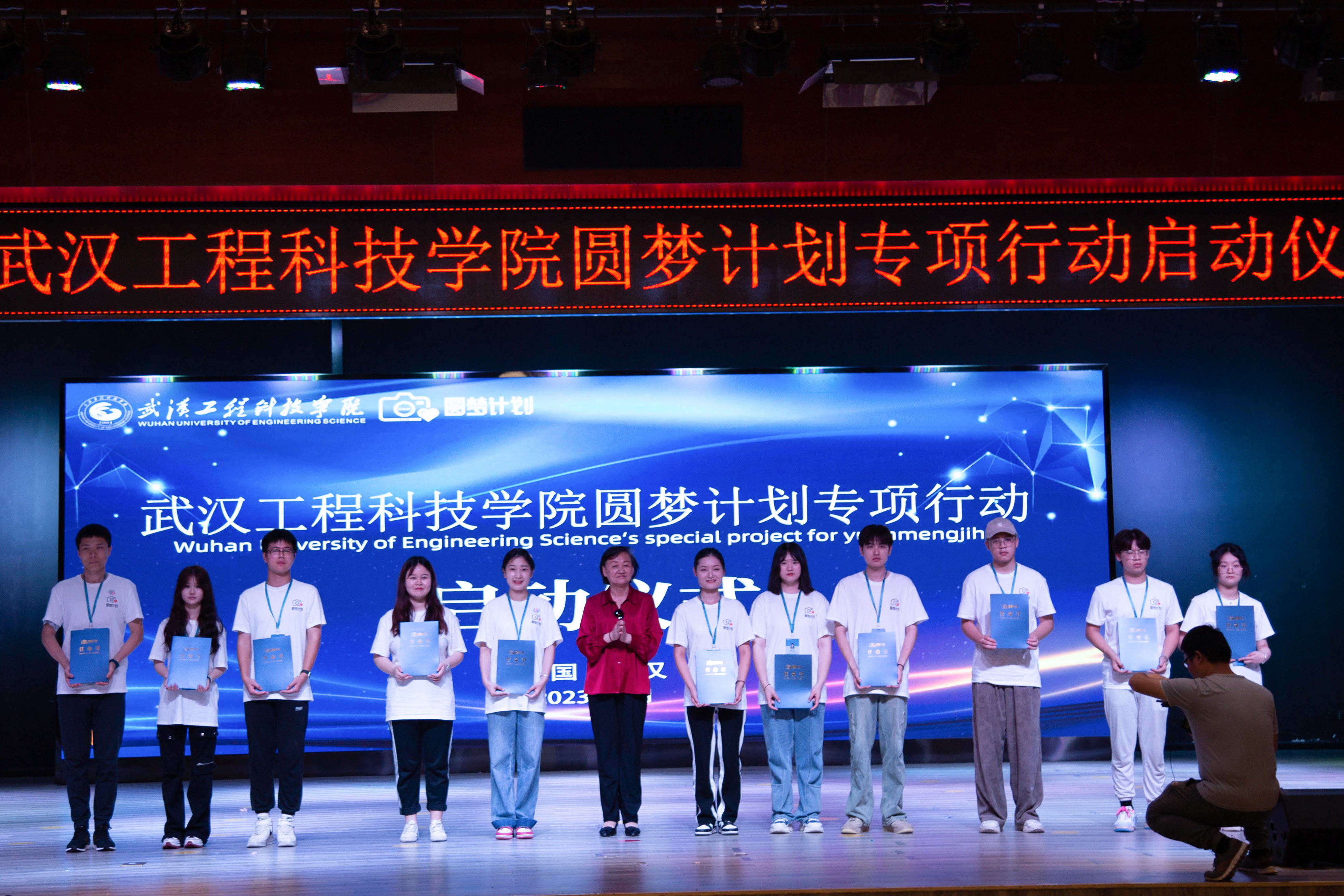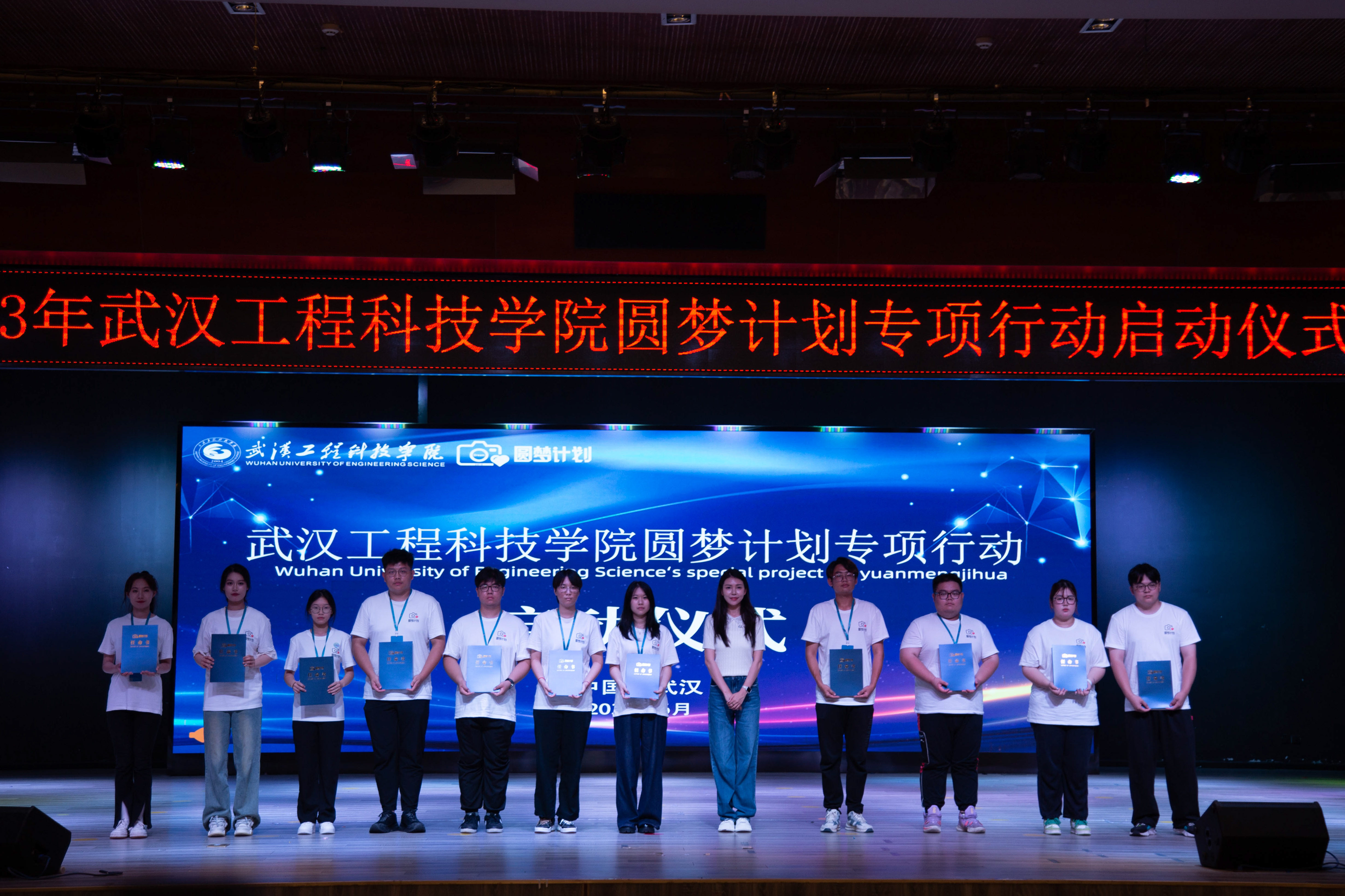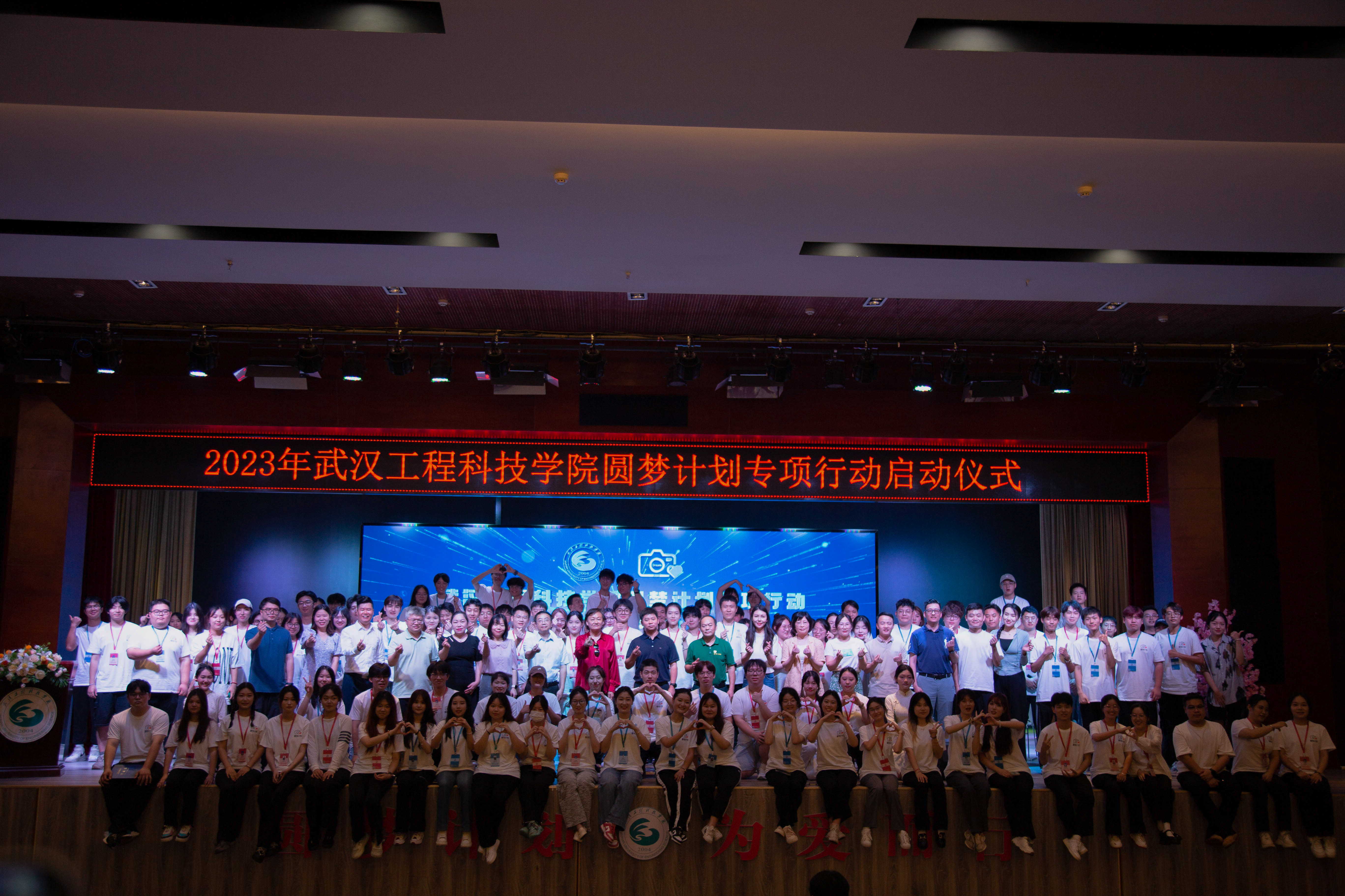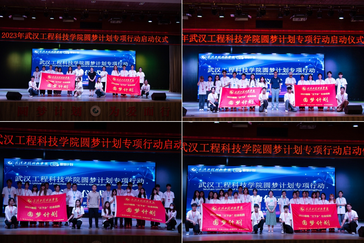 最后,在场领导嘉宾及圆梦计划全体队员上台合影留念,至此,2023年武汉工程科技学院圆梦计划专项行动启动仪式圆满结束。
