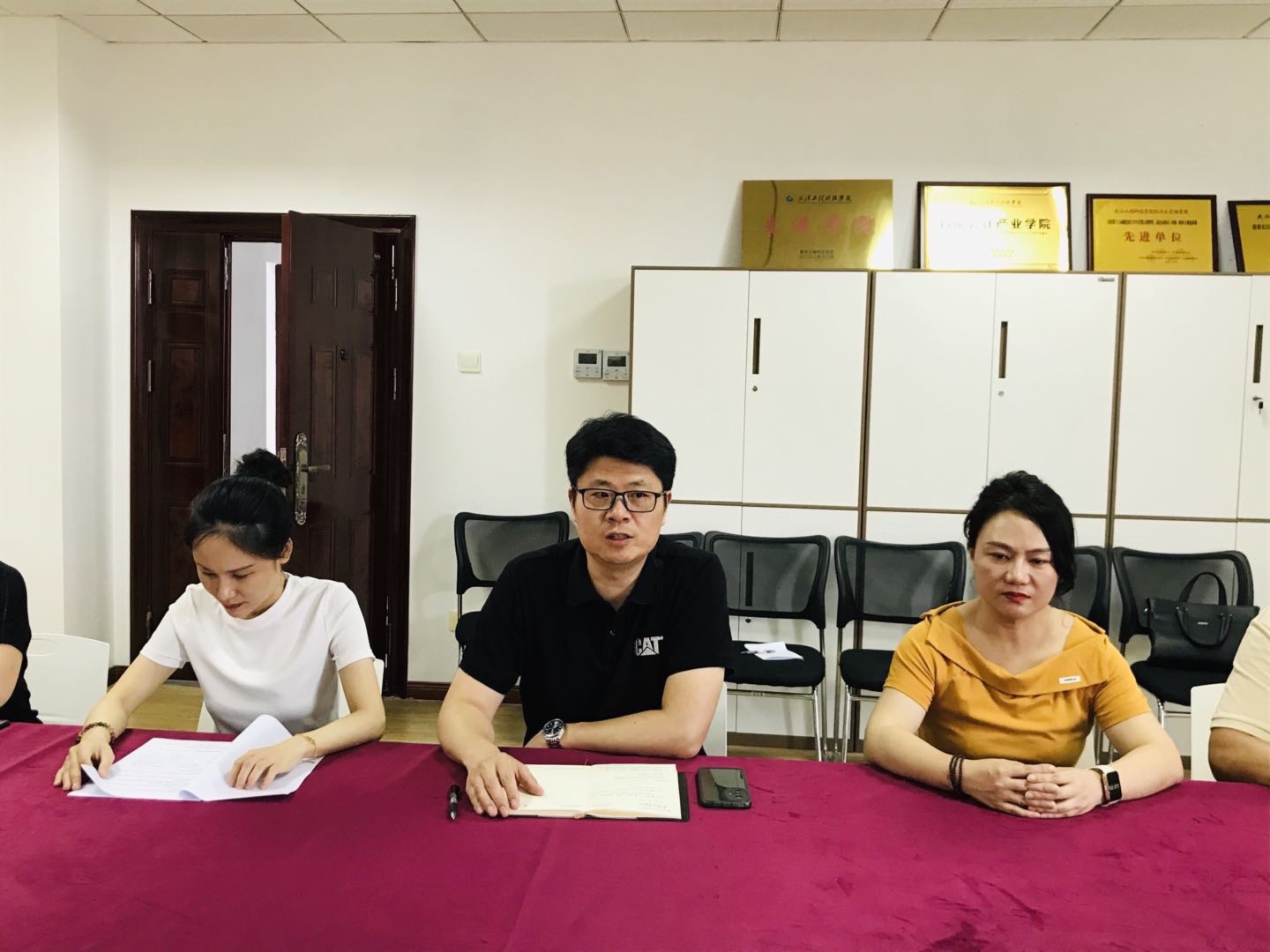毛洪涛介绍了学院院系设置、专业设置以及学生人数等基本情况,并着重介绍了学院的电商直播基地。