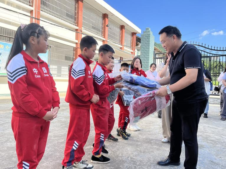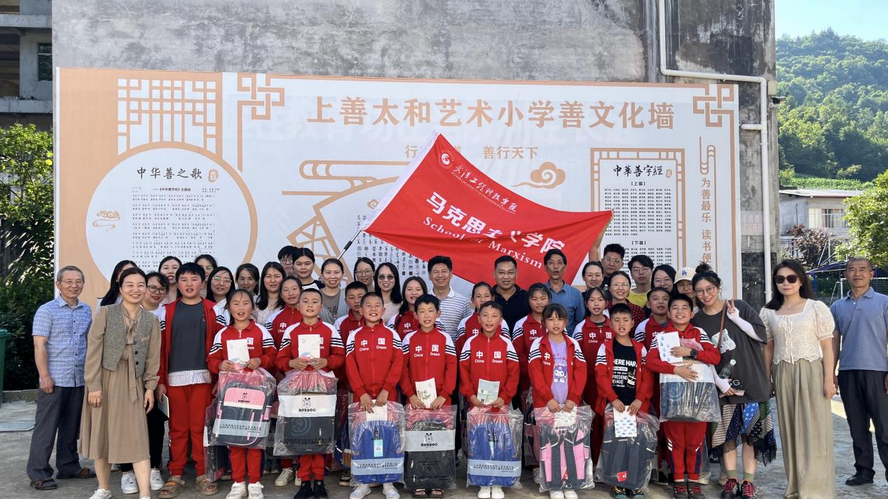 7月17日上午,在我校马克思主义学院院长阎占定的带队下,学校教师一行25人共同前往恩施州,正式开始本次暑期社会实践研修。首先,教师们跟随州人大常委会机关派驻太和街村第一书记胡福先马不停蹄地前往建始县茅田乡太和小学,看望太和小学的约20位留守学生。探访时,通过张美华等几位老师引领指导,留守学生们积极参与并互相协助完成了三项素质拓展活动,在游戏中体会人与人之间的信任、团结和友爱,培养积极乐观的人生态度和协作共进的团队精神。拓展训练结束后,阎占定、胡福先和张美华为学生们颁发了助学物资,勉励学生在不断地自身努力和团结合作中实现梦想、奔赴未来。