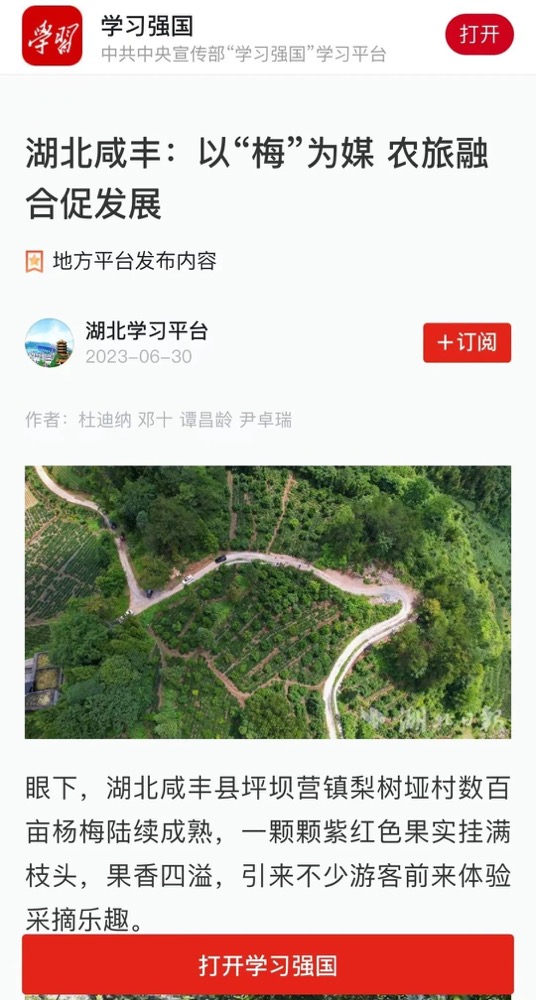 以“梅”为媒,助力乡村振兴 | 武工院人文学院“一苇以航”团队登上学习强国平台