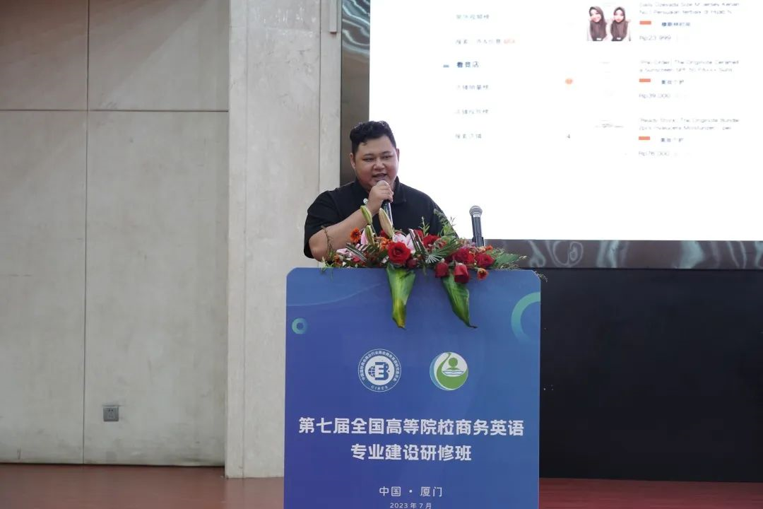 此次研修培训在福建厦门举办,由全国高等院校专家教授和企业代表们以主题报告、课件分享、交流研讨和企业参访的形式展开。各位专家教授就新文科以及数智化背景下,商务英语专业建设如何从科研课题、思政课程建设、新时代跨学科跨能力培养等方面进行探讨。来自跨境电商直播的优秀企业代表分享了全球化、数字化营销跨境电商直播前沿资讯,在此期间,实地参访了企业漳州建晟集团。