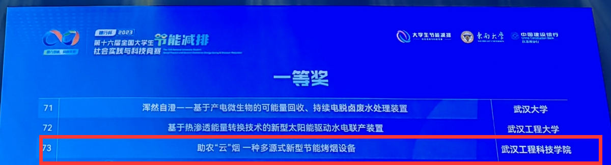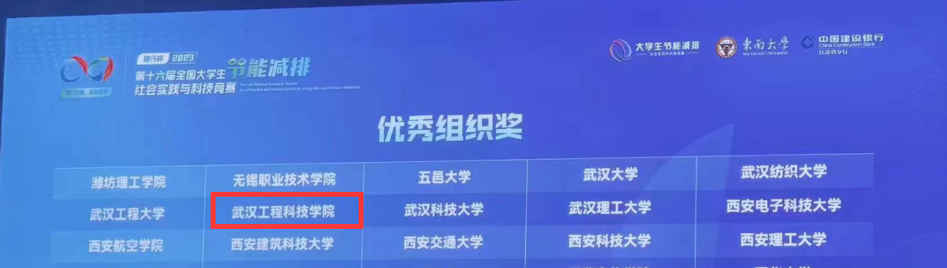 与清华大学、浙江大学、武汉大学、华中科技大学、哈尔滨工业大学、西安交通大学、上海交通大学等全国优秀学府同台竞技,武汉工程科技学院选手表现突出,在全国总决赛中获得一等奖,学校获得优秀组织奖。这一骄人战绩来自“建行杯”第十六届全国大学生节能减排社会实践与科技竞赛总决赛。本届赛事于8月1日在东南大学举行,武汉工程科技学院代表队历经两天激烈比赛,勇获一等奖,创造了学校在该项竞赛的历史最佳成绩。