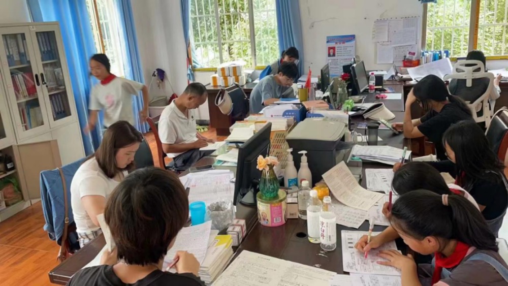 在6月24日调研环节中,我们通过与孩子们及村委会的交流,深入了解的乡村振兴情况,对发展状况有了更深层次的认识。我们关注每一位孩子,为他们提供温馨关怀,同时在支教生活中锻炼自己。为了进一步了解同学们对相关知识的掌握状况,更加有效地调控和管理教学过程,我们对六个年级各科目进行了阶段检测。本次检测采用贴近小学期末复习的贵州省最新试卷,由我们“心光梦”8名各任课小教师组织监考,阅卷。老师们及时发现总结教学的成功经验和不足之处,为学校今后教学质量做好了稳定保障。体育课中我们与孩子们亲密接触,这群孩子淘气可爱,集队可不是一件容易的事情,“老师,我要和她站!”“老师,今天我们玩老鹰捉小鸡吧!” “老师,你抱抱我” “老师,他打我!”……