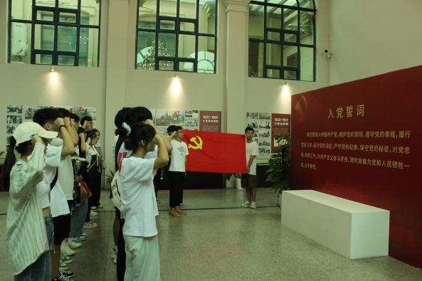 参观回到一楼展厅,全体同志面向党旗,重温入党誓词,铿锵有力的誓言展现出广大青年不忘初心、牢记使命的信心和决心。