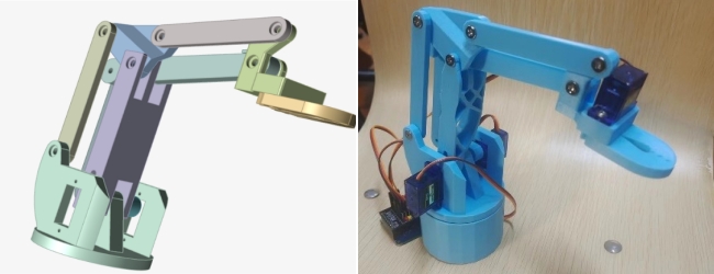 三维打印轻量化的作品是一个简易机械臂,利用拓扑优化程序优化了其中的支柱部分,使其在安全受力的范围内做到材料最少化,并对其进行添加舵机与控制主板,使其成为一个能够自由活动的机械臂。