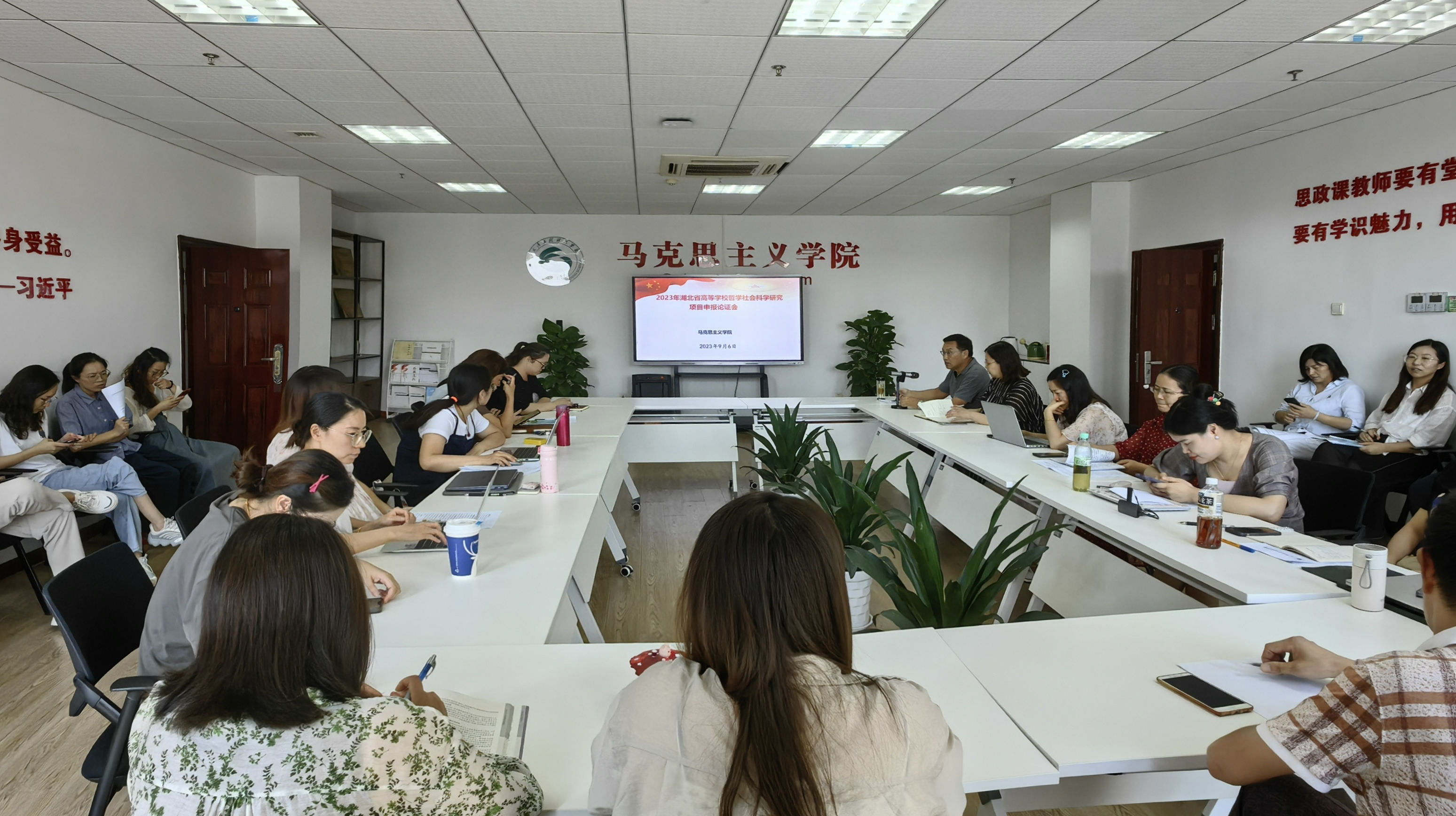 本网讯(通讯员 李柯青)为切实提高马克思主义学院教师课题申报质量和立项率,推动学校科研工作再上台阶。9月6日下午,我校马克思主义学院在综合楼409会议室召开2023年湖北省高等学校哲学社会科学研究项目申报论证会。马克思主义学院院长阎占定,副院长高莉为我校拟申报湖北省高等学校哲学社会科学研究项目的教师进行专题指导,立项教师代表、部分学术委员以及项目申报负责人参加了此次论证会。会议由阎占定主持。