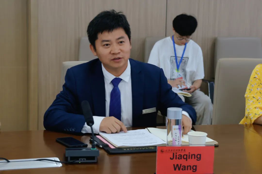 会上,王加青代表学校向索菲亚大学校长 Carol Humphreys一行的来访表示热烈欢迎。他就学校基本情况进行了简要介绍,并表示Carol Humphreys一行的到来,将有力推动学校国际化办学历程,加深两校深厚的友谊。他希望,通过此次签约,能够进一步促进两校友好交流,并期待在专业共建、教学活动、学术会议、师生互派互访等方面开展更深入的合作。