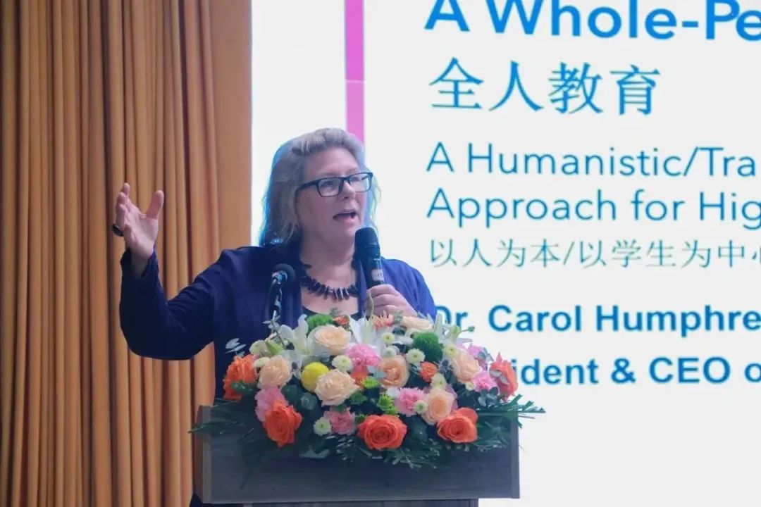 随后,索菲亚大学校长Dr. Carol Humphreys在图书馆报告厅举行《A Whole-Person Education:以人为本/以学生为中心的高等教育方法》讲座分享。