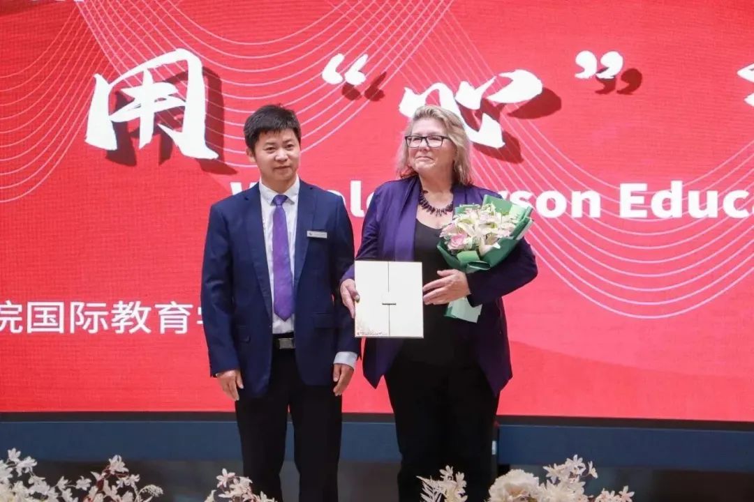 王加青为Dr.Carol Humphreys颁发武汉工程科技学院心理学研究中心荣誉顾问、客座教授聘书。