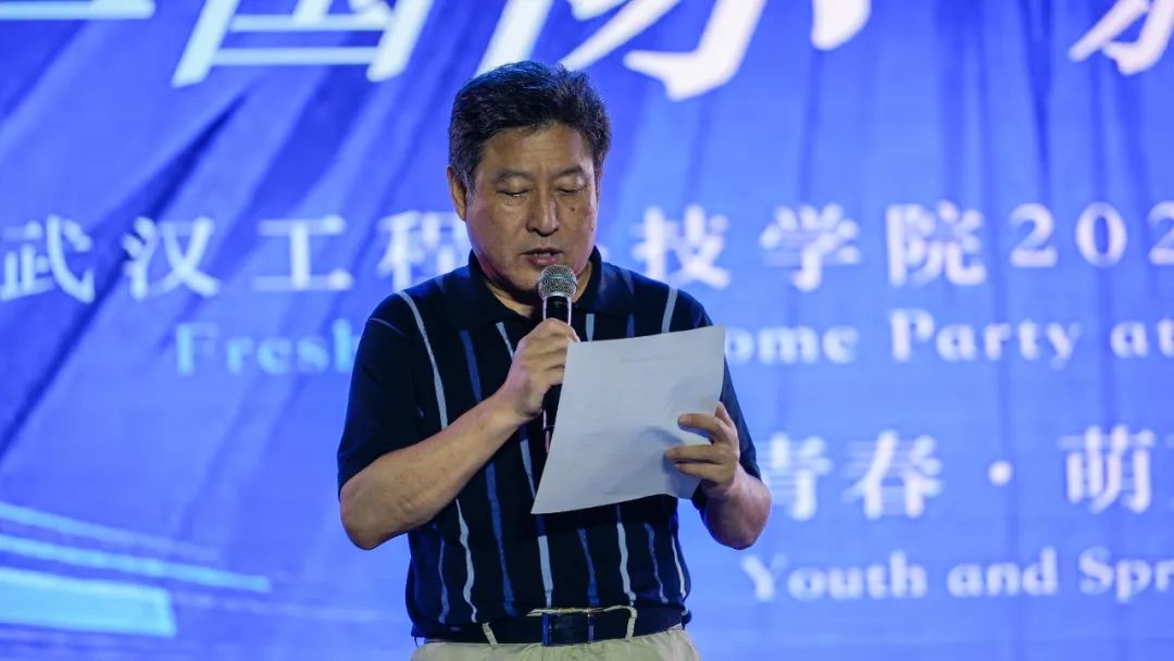 杨伦致辞。他代表学校向2023级全体新同学们的到来表示热烈欢迎!他祝愿各位同学在武汉工程科技学院以饱满的精神、奋发的姿态,拥抱大有可为的未来,书写人生辉煌的篇章。