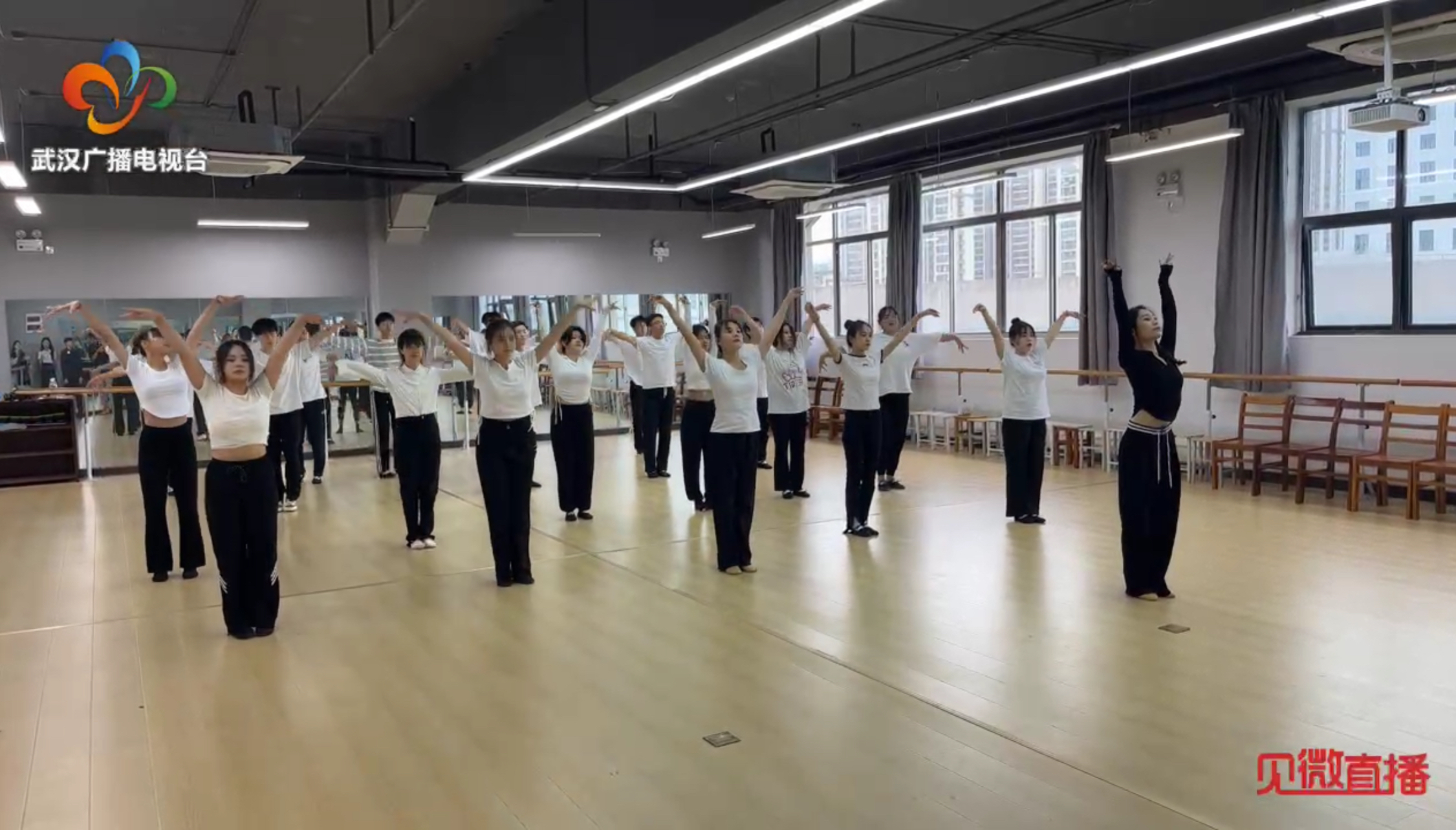 形体教室的课堂上,表演系主任陈琪老师正在给表演系的学生授课民族民间舞,这门课程不仅可以帮助学生提高身体协调能力和灵活性,还可以增强他们对不同文化的理解和尊重,最后,在陈琪的带领下,同学们给我们带来了一场赏心悦目的舞蹈表演。