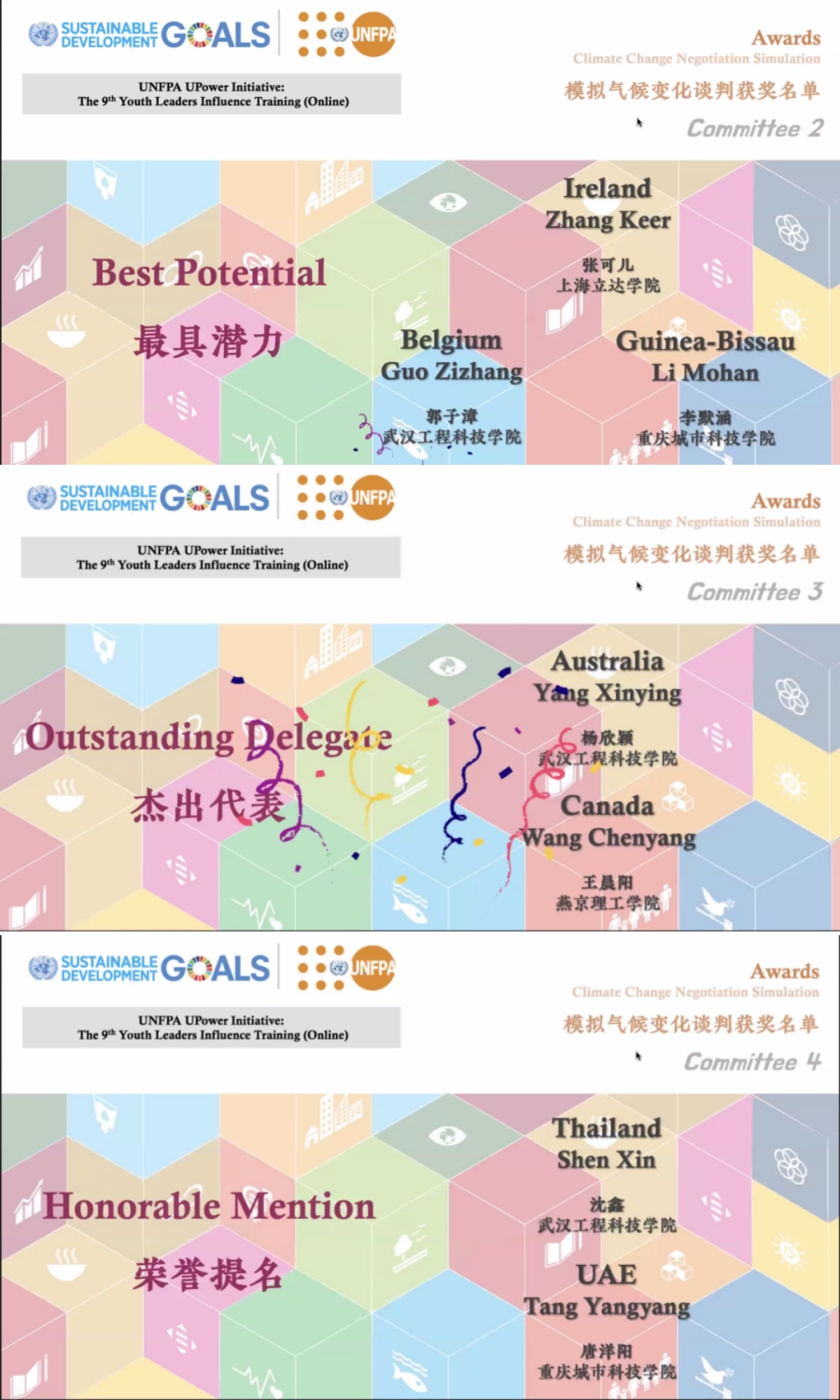 以下为在本次联合国人口基金会UPower计划:第九届青年榜样影响力培训本校学子的获奖名单。