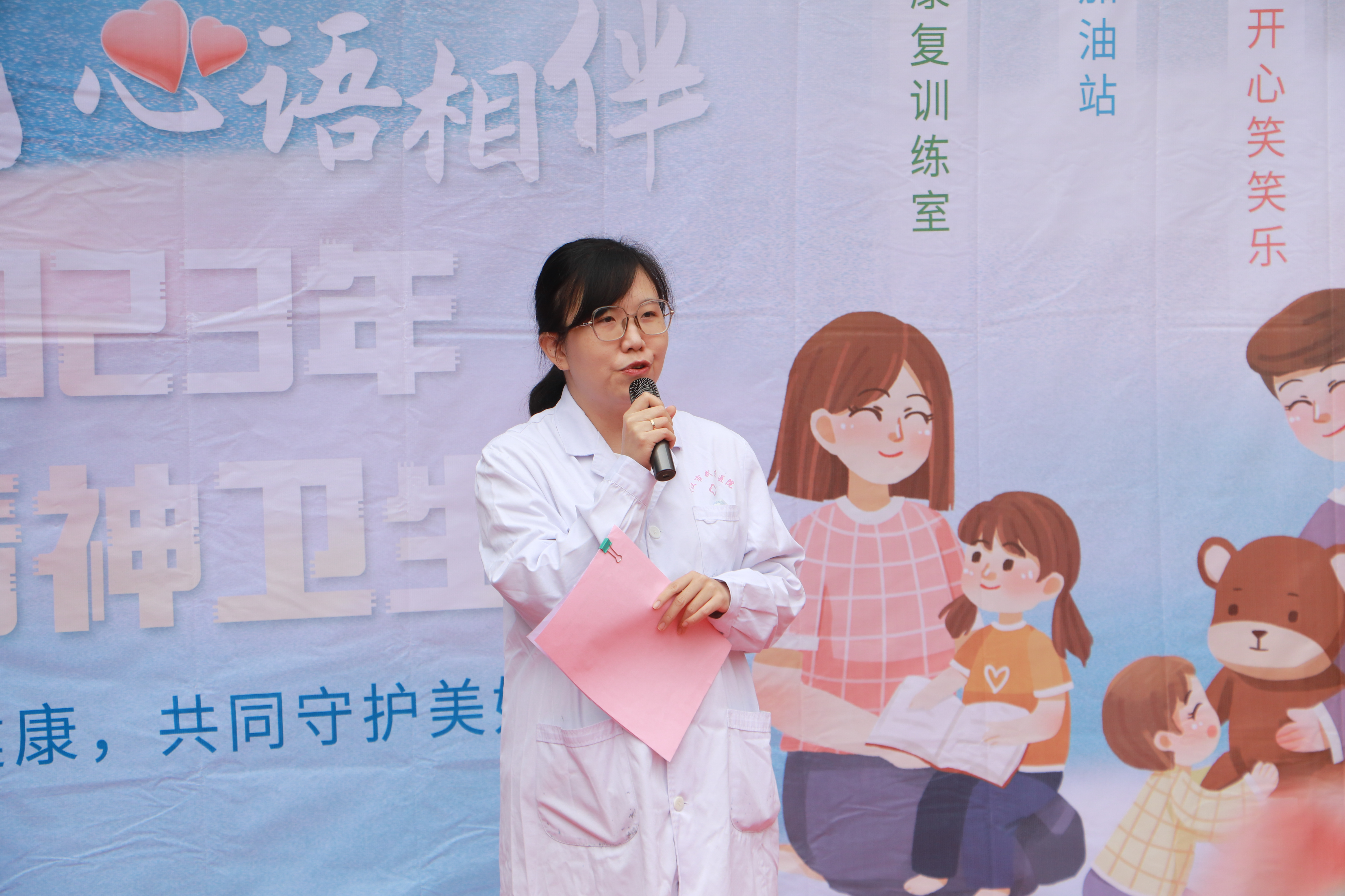 活动伊始,青山区卫健局副局长耿维东,武汉市武东医院工会主席高海兵致辞,武汉市武东医院儿少心理科主治医师彭茜医生为大家科普“情绪识别四部曲-积极心理学”知识,呼吁大家共同关注青少年心理健康问题,同时也要注重自己的心理健康状态。在现场,曾患有抑郁症的志愿者宁瑶分享了自己的生命故事,同时,为大家带来了一段自作独白,他衷心希望面临同等心理疾病的朋友能够尽快关注心理问题,接受专业的心理治疗,早日走出困境。