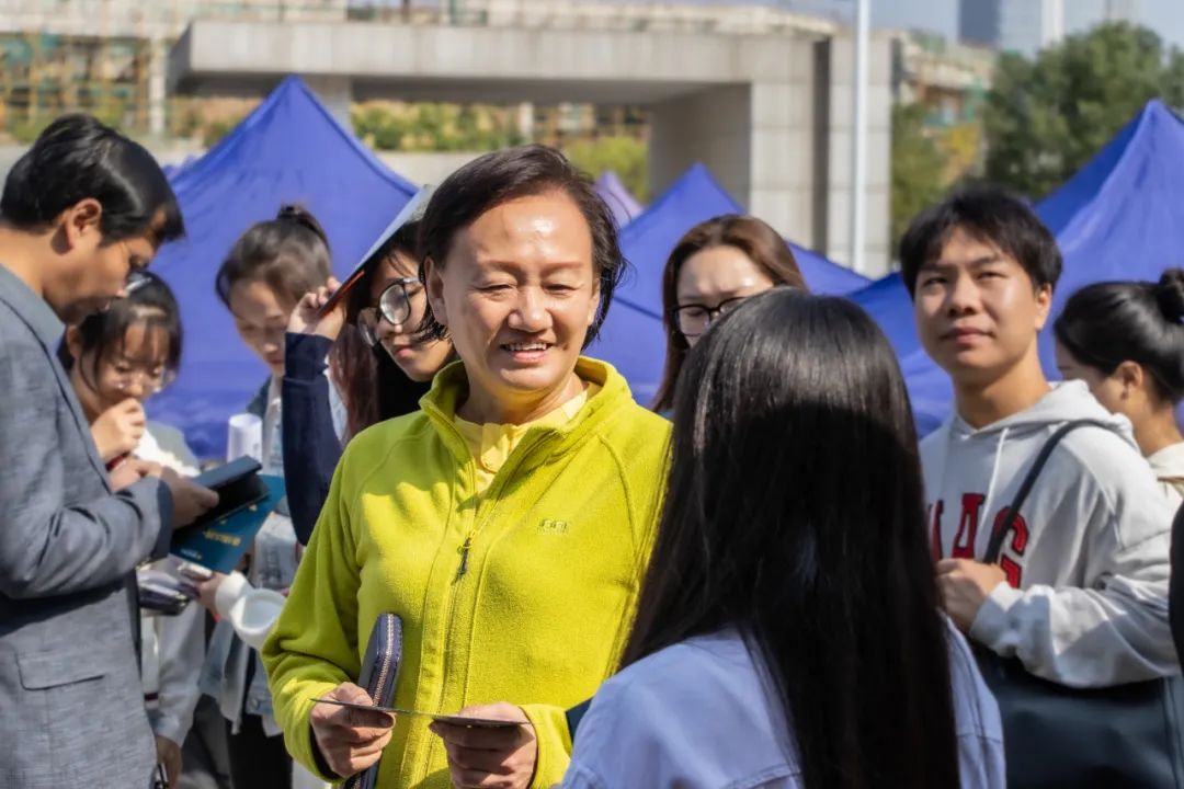 学校副董事长、党委副书记、常务副校长王加青,党委书记高芸,党委副书记、校长助理唐军国,党委常委、校长助理郭万春等校领导亲临现场指导工作,深入公司展台详细了解公司情况和应聘情况,与毕业生一同听取招聘人员的意见和建议。在今年的秋季招聘会上,学校还首次设立了“简历门诊”,并邀请前程无忧工作人员帮助学生优化应聘简历、提升面试技巧。王加青来到“简历门诊”,接过简历,亲自为毕业生们进行简历诊断,他表示,毕业生们的简历非常优秀,我校毕业生们基本能达到招聘企业的需求,希望各位毕业生们在未来的日子里好好工作、好好生活,同时建议在校生要多参加学科竞赛和学校活动,提升自身专业能力和竞争力。