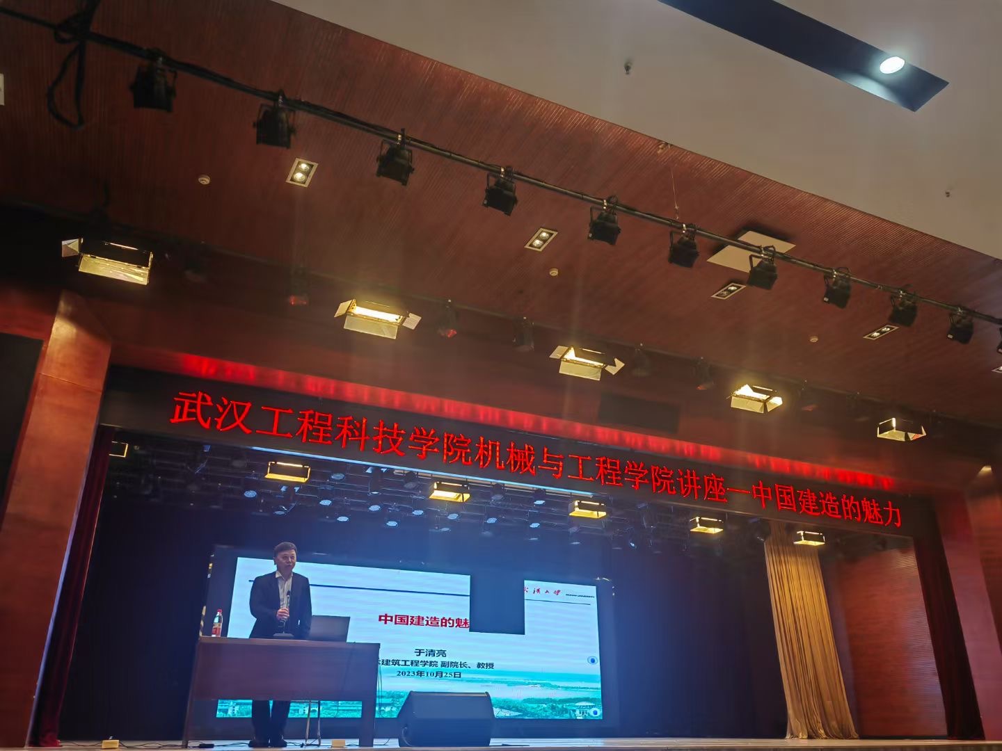 于清亮教授以“中国建筑的魅力”为题作学术报告。他首先从“南海岛礁建设”、“空中造楼机”、“架桥机”等一系列中国建造展示了中国建造彰显的大国力量,中国建造的魅力。于教授从设计到施工到运维的角度给大家分享了人工智能建筑设计、先进土木工程材料、像汽车一样造房子、建筑环境智能调控等先进技术,最后指引同学们在大学生涯有哪些方面可以提升武装自己,在大学四年中如何明确自己的目标方向并规划好未来发展的方向,鼓励大家为中国建造献出自己的青春力量。关注社会与环境,在时代的变幻中建设有生命力的空间。