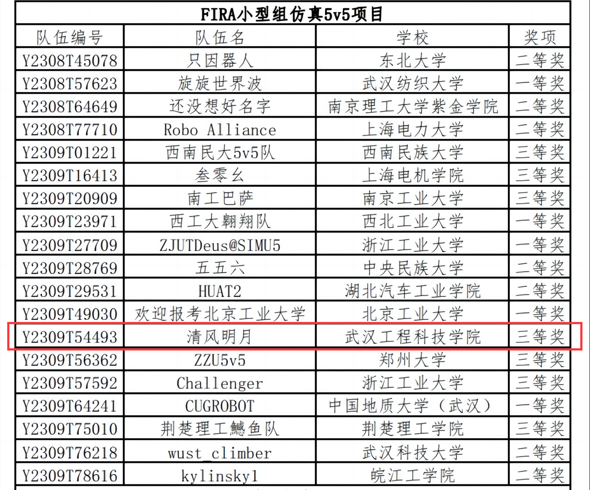 本届大赛为我校首次参赛,学校派出由罗忠文和刘艳老师指导,雷中凯、郭子豪、王泽睿三位同学组成的清风明月队参赛,并荣获FIRA小型组仿真5v5项目全国三等奖。