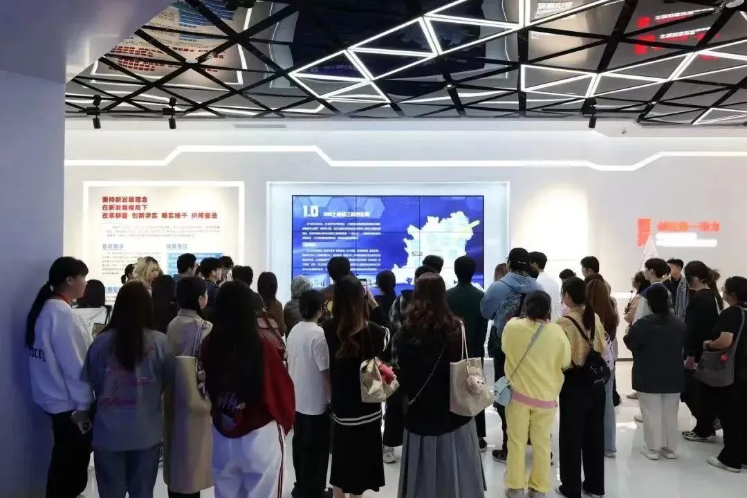上午,研学团来到位于松江区的长三角G60科创云廊进行参观学习和实践。G60科创云廊,被业界称作“世界最长城市产业长廊”,是全球优秀创新人才的向往之地。在工作人员的引导下,研学团成员参观了“发展历程”、“科技创新”、“制度创新”、“党建引领”四个展厅,深入了解G60科创云廊的建设思路、规模构建、总体定位及未来的发展目标,真切感受到了G60科创云廊坚持“科技创新”、“制度创新”的双轮驱动成效。