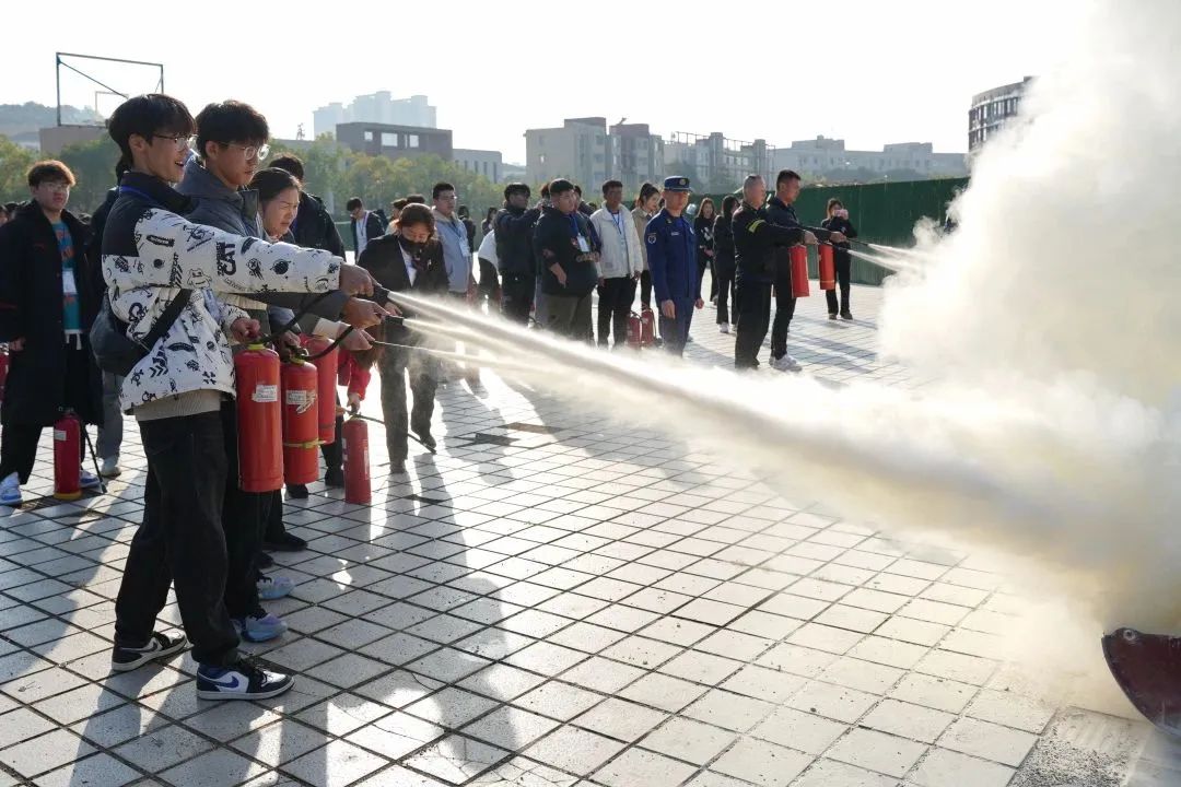 随后,为进一步增强师生们对消防知识的了解,消防官兵现场组织师生进行消防实战演练,并全程指导师生使用灭火器。师生们都认真圆满完成了演练,展现了我校师生良好的纪律性和团队协作能力。在模拟火灾逃生的过程中,学生们紧听指挥,有条不紊地撤离,整个过程快速、安全、有序,展示了极高的消防安全意识。