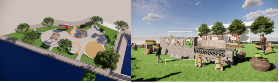这次设计服务团队由我校艺术与传媒学院环境设计系主任范晶晶、骨干教师李婧、刘静带领20和21级8名学生团队参与改造项目。本次活动设计周期长,设计内容广,涵盖景观设计、设施设计、IP设计等,团队通过对双潭村的数次调研走访,充分了解了当地风土人情,在经过与村委、村民的共同商议下,最终确定2处空地景观改造和10 处小节点的改造。