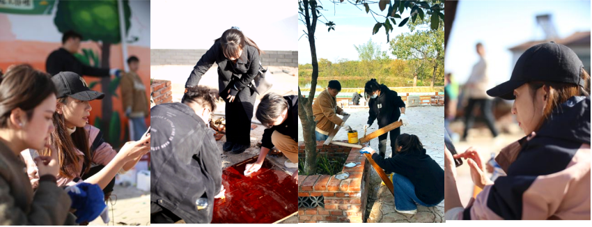 设计前期团队与村委领导、村民施工方都针对改造节点的想法进行了深入的交流,并在村庄进行实地测量,与村民沟通,了解需求。学生们也积极在村落中寻找老物件,作为改造设计中的景观一角。而后团队对定下改造的节点进行了测量、绘图、设计方案,并积极与村民沟通,修改多次,最终完成了双潭村景观设计方案。