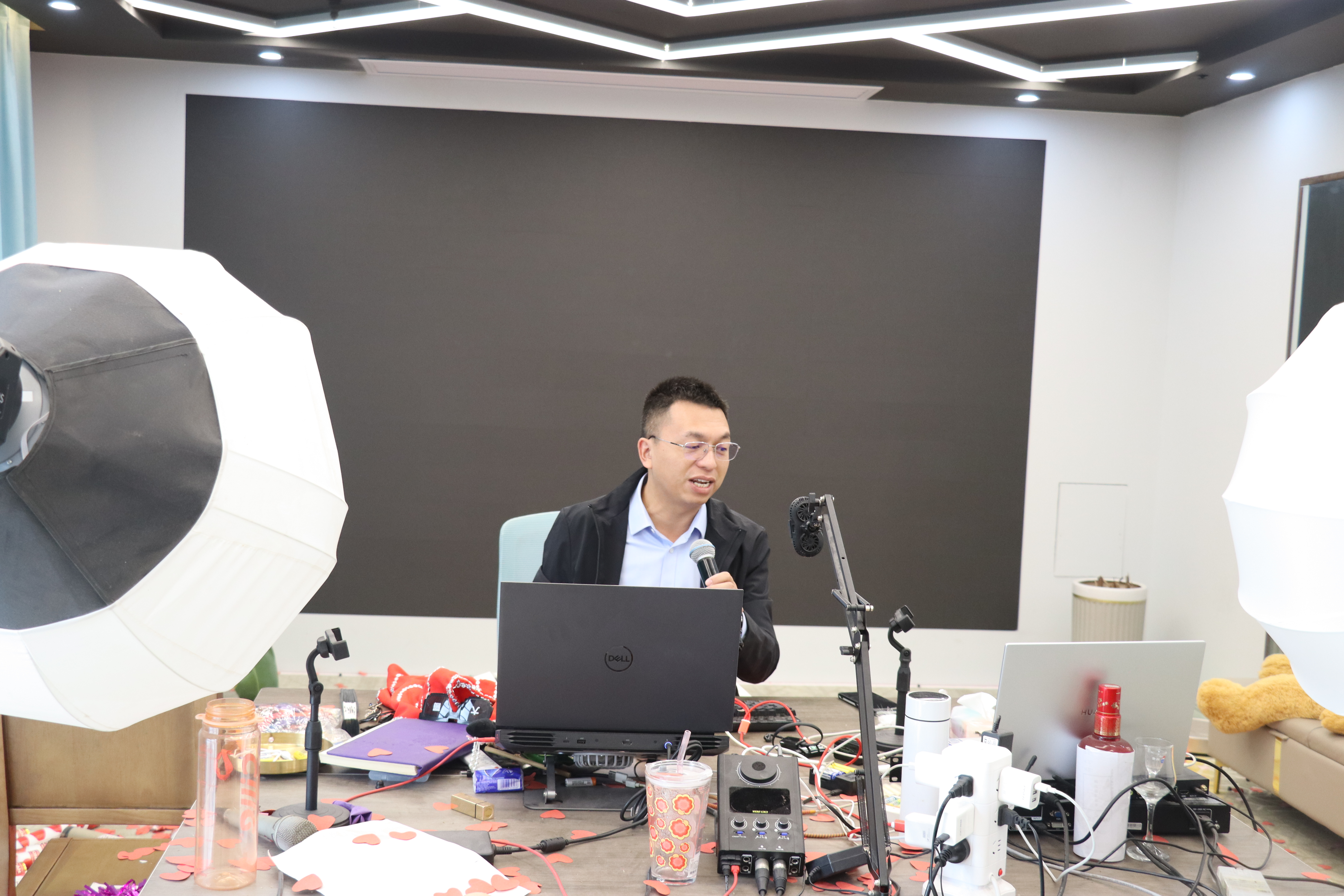 经济与管理学院教师石忠义在园区内公共电商直播间为相关企业开展了电商直播的现场教学。