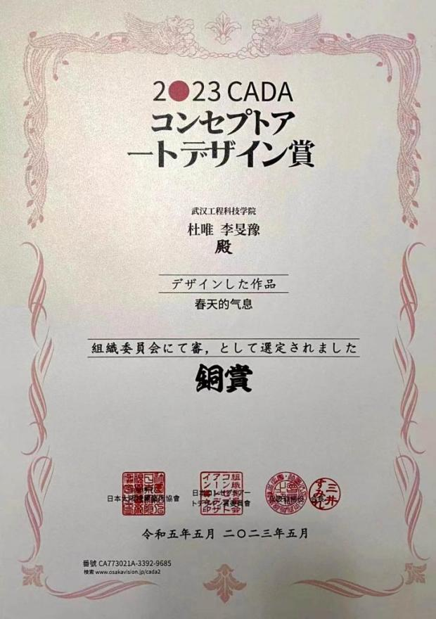 日本概念艺术设计奖,由东京都生活文化局为倡导、日本大阪视觉艺术协会主办,致力于开展追求东京独特性和多样性的艺术计划、培养支撑各种艺术文化活动的人材以及促进国际性的艺术文化交流。我校21级数字影像系杜唯、李旻豫同学作品《春天的气息》斩获得铜奖。
