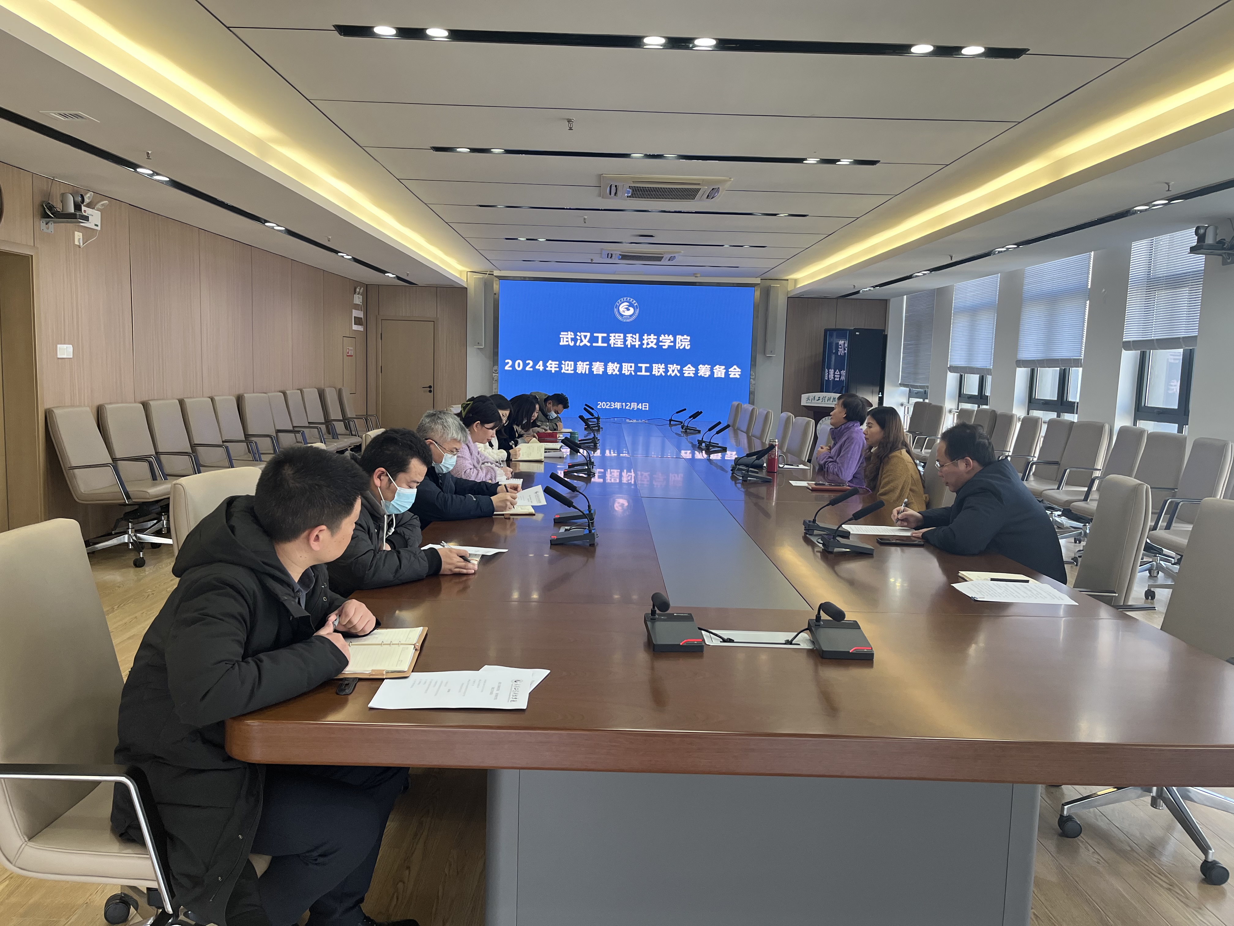 12月4日下午,武汉工程科技学院2024年迎新春教职工联欢会筹备会议在综合楼1210会议室召开。学校党委书记高芸,党委副书记、副校长、工会主席廖璐莎,党政办公室主任刘美中,以及各分工会主席参加了此次会议。会议由学校工会副主席莫亮主持。