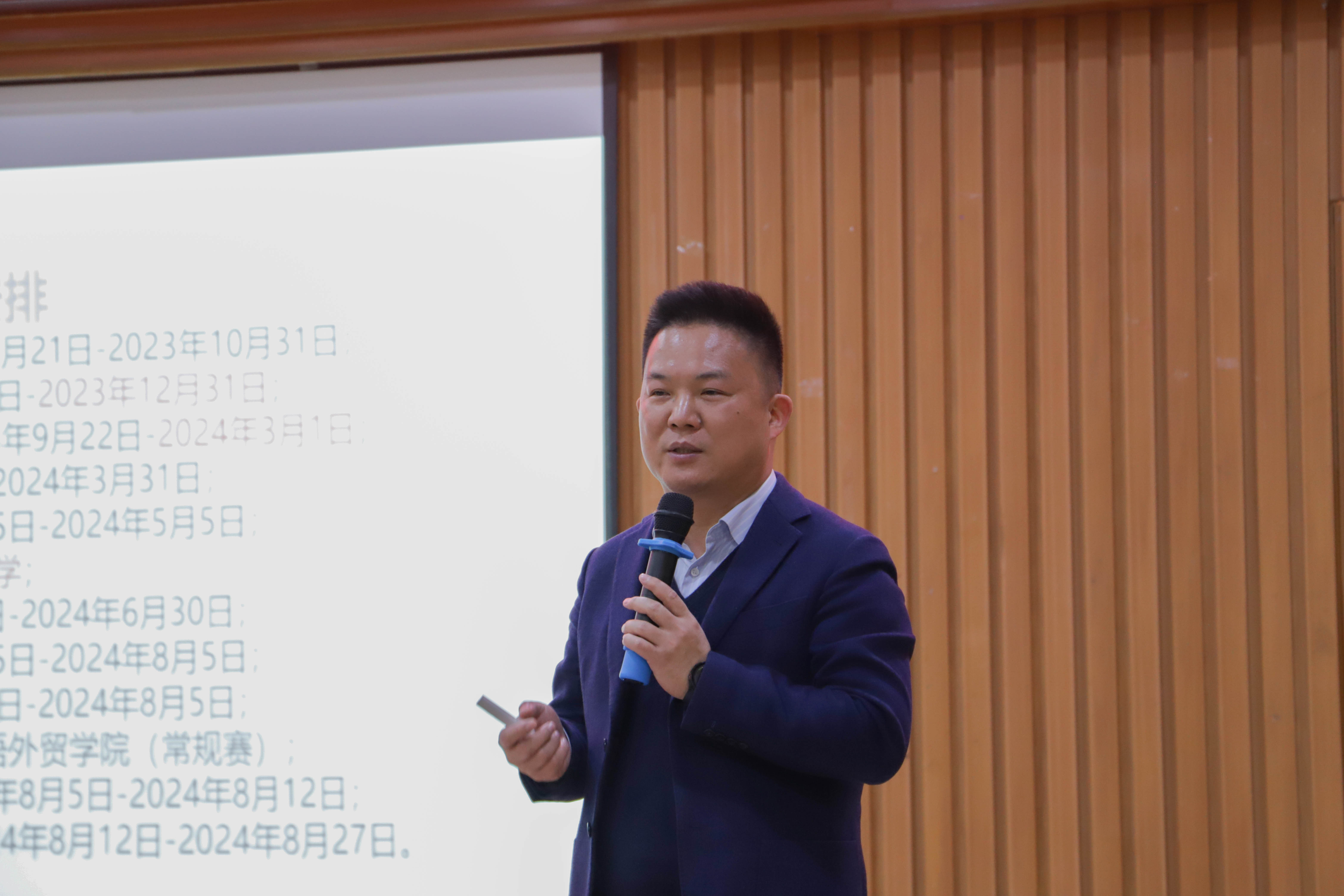 本网讯(大学生见习记者闫亚萌 钱馨琪 摄影谢冉 祝永康)为进一步建立面向市场的人才培养体系,搭建学校高水平学术交流平台,提高学生参与电商三创赛积极性,12月6日下午,武汉工程科技学院在学生事务中心311会议室举办数字经济产业学院竞赛专题讲座暨第七期知行讲堂。讲座邀请湖北经济学院创新创业学院执行院长、实验教学中心副主任,电子商务国家级一流本科专业建设点负责人毛志斌教授作报告。我校经济与管理学院工商管理专业系主任文薏涵及师生代表参加了本次活动,活动由经济与管理学院副院长毛洪涛主持。