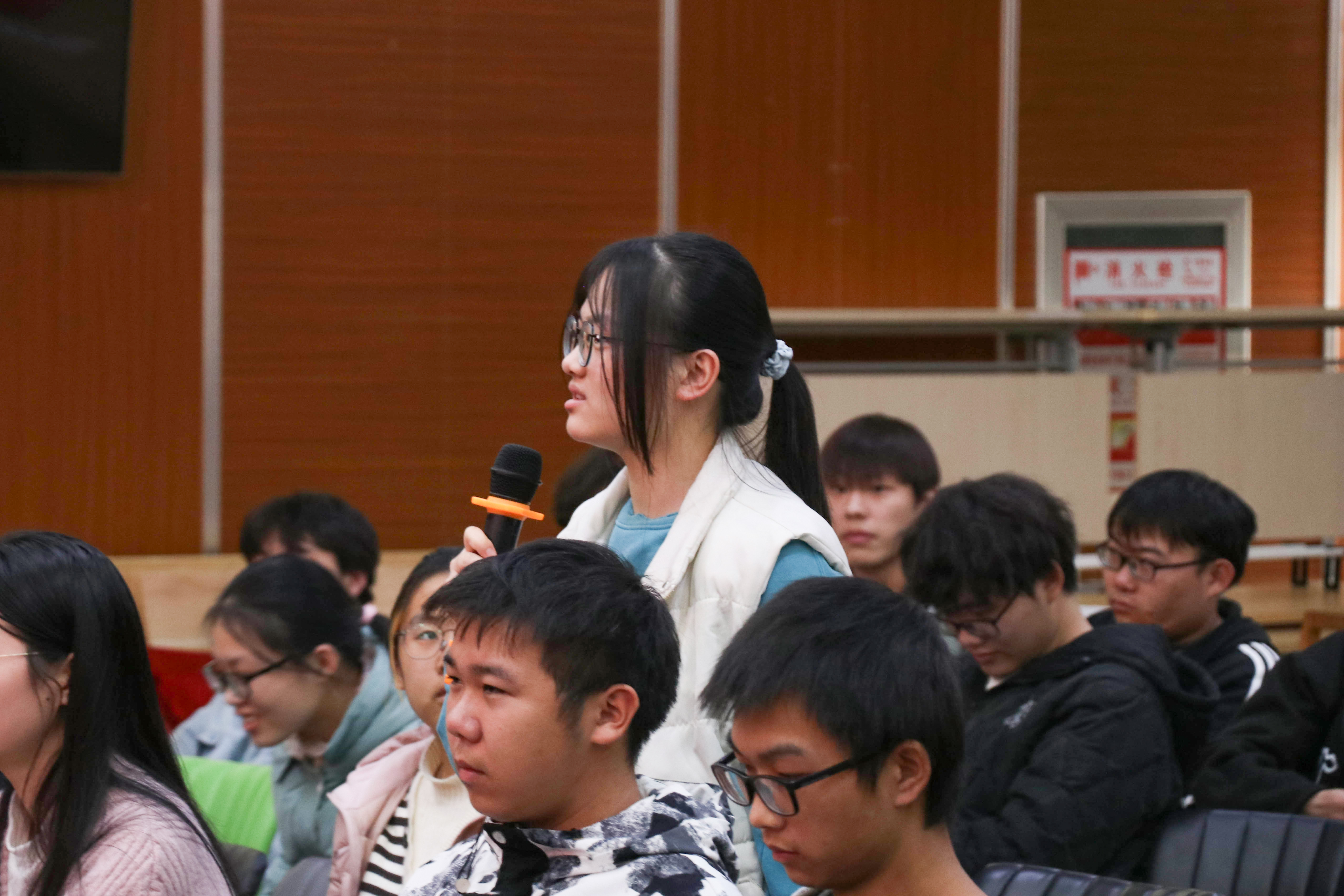 在互动环节中,师生们积极地向毛志斌教授提问。“既然项目一定要落地,那么做到什么程度才算真正的落地?”“在实训中,我们作为指导老师应该通过什么方法才能帮助学生拿到一个好成绩呢?”“学校作为一所民办应用型本科高校,在这个赛事的选题方向和未来项目选择的层面上,毛教授有没有什么好的建议?”毛志斌教授结合本次讲座内容对这些问题进行详细回答,他说:“第一,‘训’放在赛的前面,在实践过程中训练更重要;第二,在赛道的选择方面,我们要知道常规赛中获奖比例低,作为应用型高校,实战赛获奖比例高,并建议可以把乡村振兴、buc和电商直播这三个赛道作为首选,将务实落实到底。”