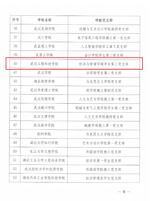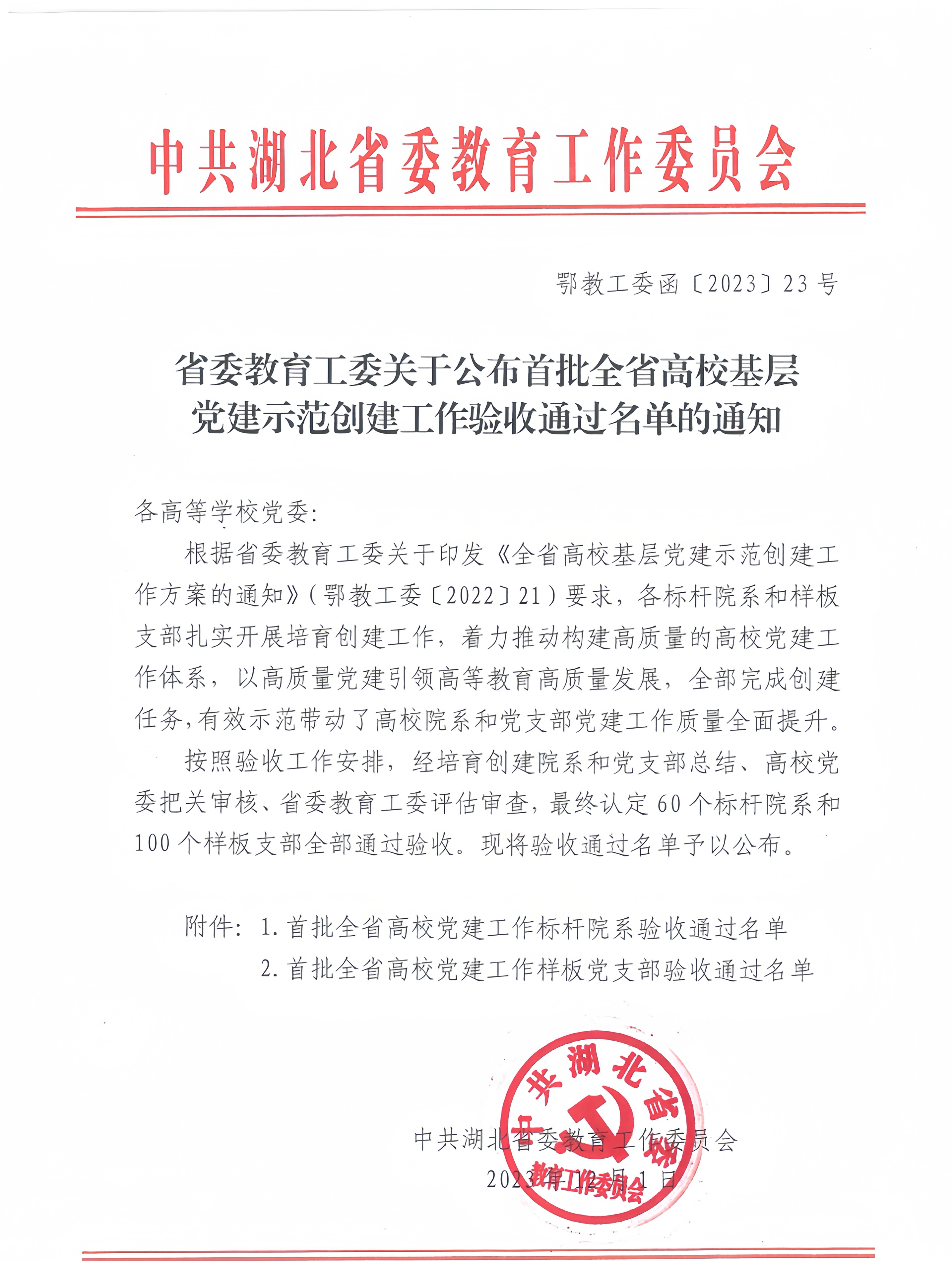近日,中共湖北省委教育工委公布了首批全省高校基层党建示范创建工作验收通过名单,我校经管学院学生第三党支部作为省级样板支部培育创建单位顺利通过验收。