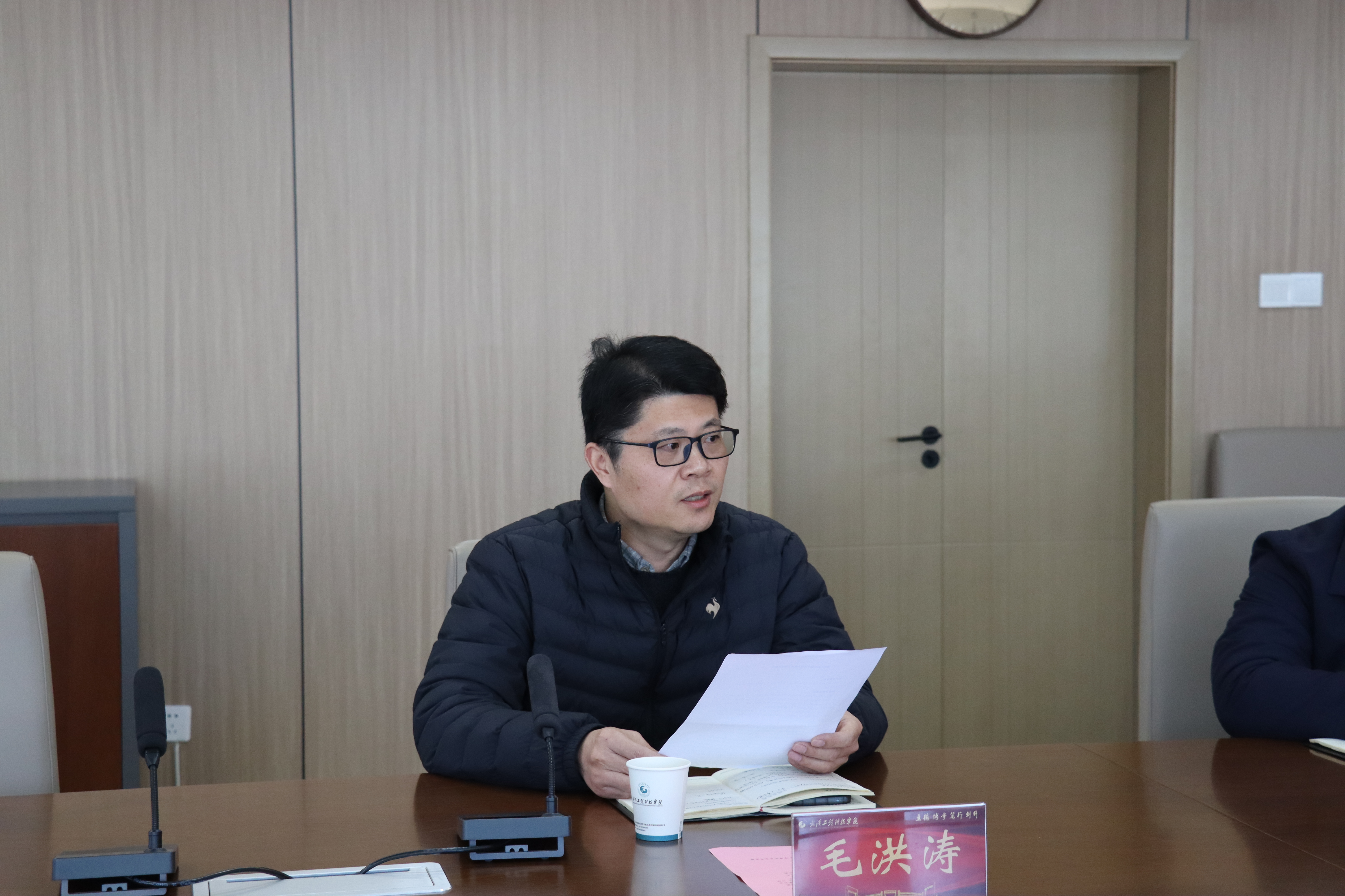 毛洪涛向省供销总社各位领导简介了我校电商专业的办学现状及电商直播实验室的运行情况。