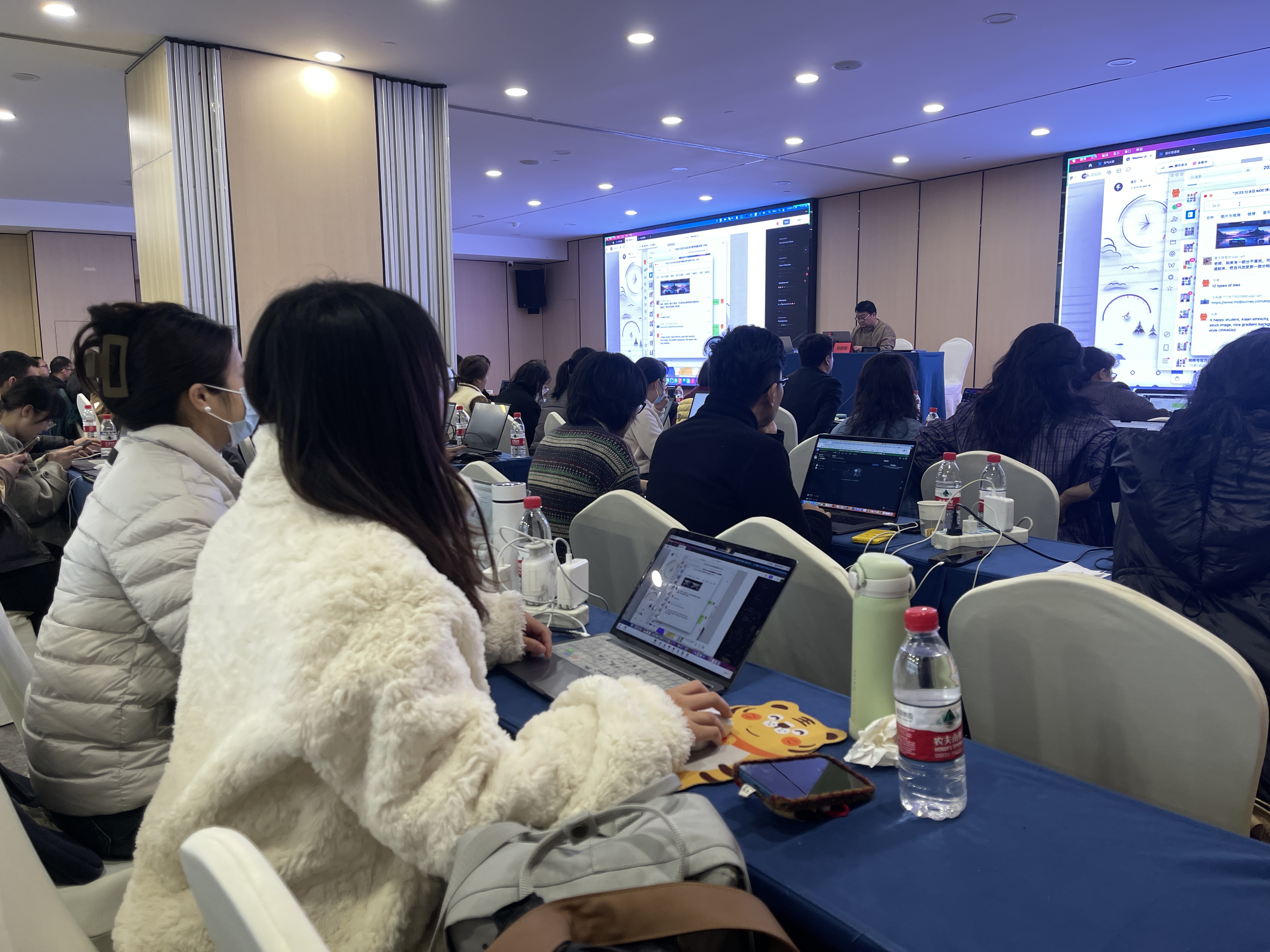 此次培训是由AIGC研究专家张晓明和知名设计博主乐章共同授课。两位老师在培训中全面介绍了AIGC技术与工具的基础,结合案例对Midjourney和Stable Diffusion等AI生成工具进行详细的讲解。此外,两位老师也通过对商业案例分析演示的方法进行文生图、图生图、图生文等实操,重点讲解了提示词与反向提示词的详细使用以及Midjourney和Stable Diffusion不同类型图⽚的生成操作。