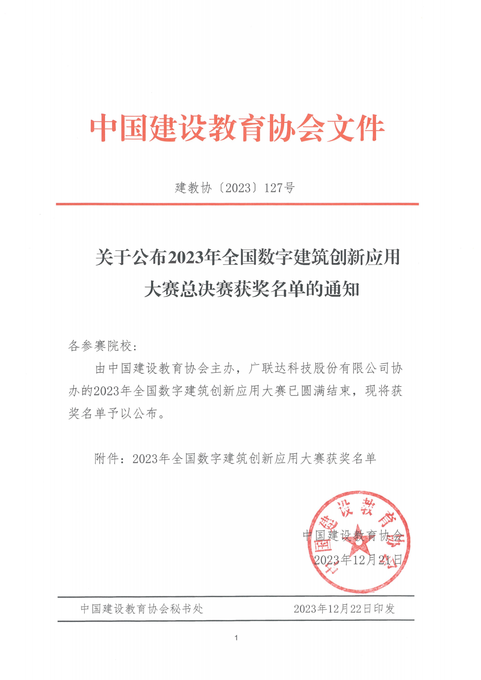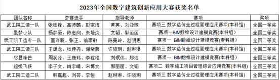 喜报!武工院学子在2023年全国数字建筑创新应用大赛中斩获七项全国奖项