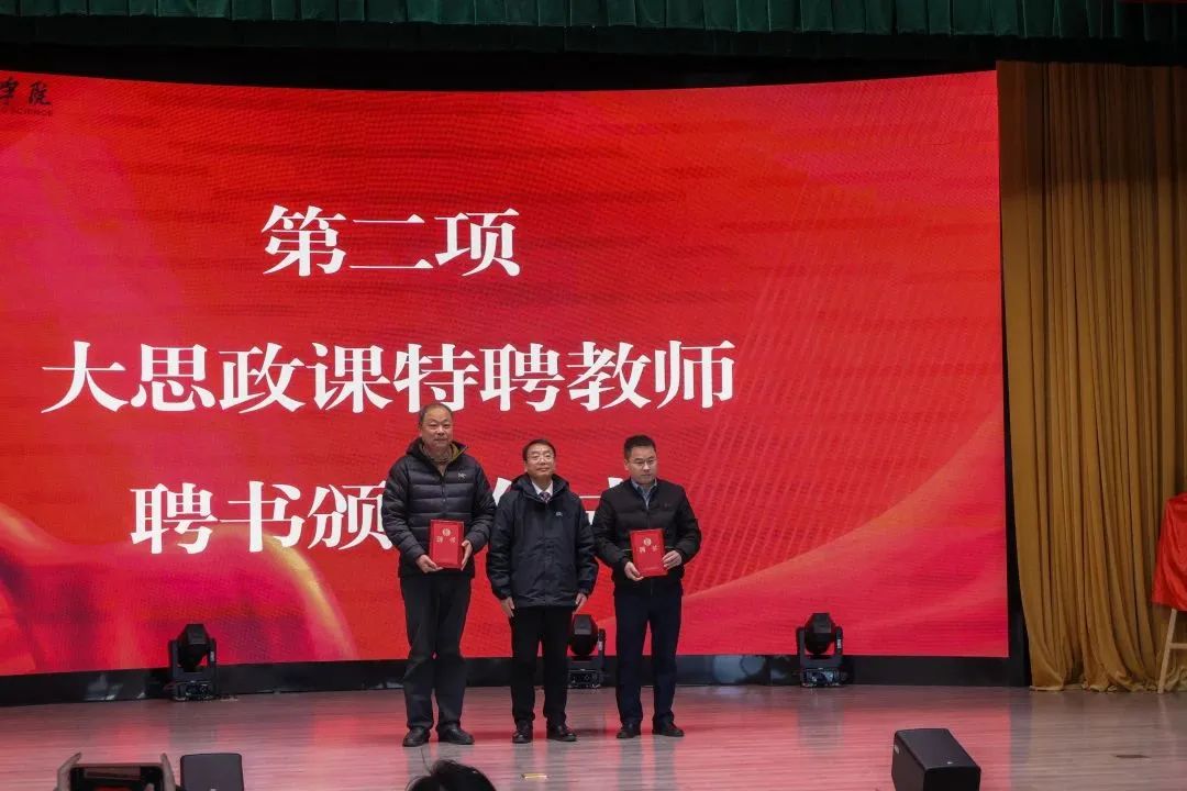 唐军国为大思政课特聘教师余峰、邹志刚颁发聘书。