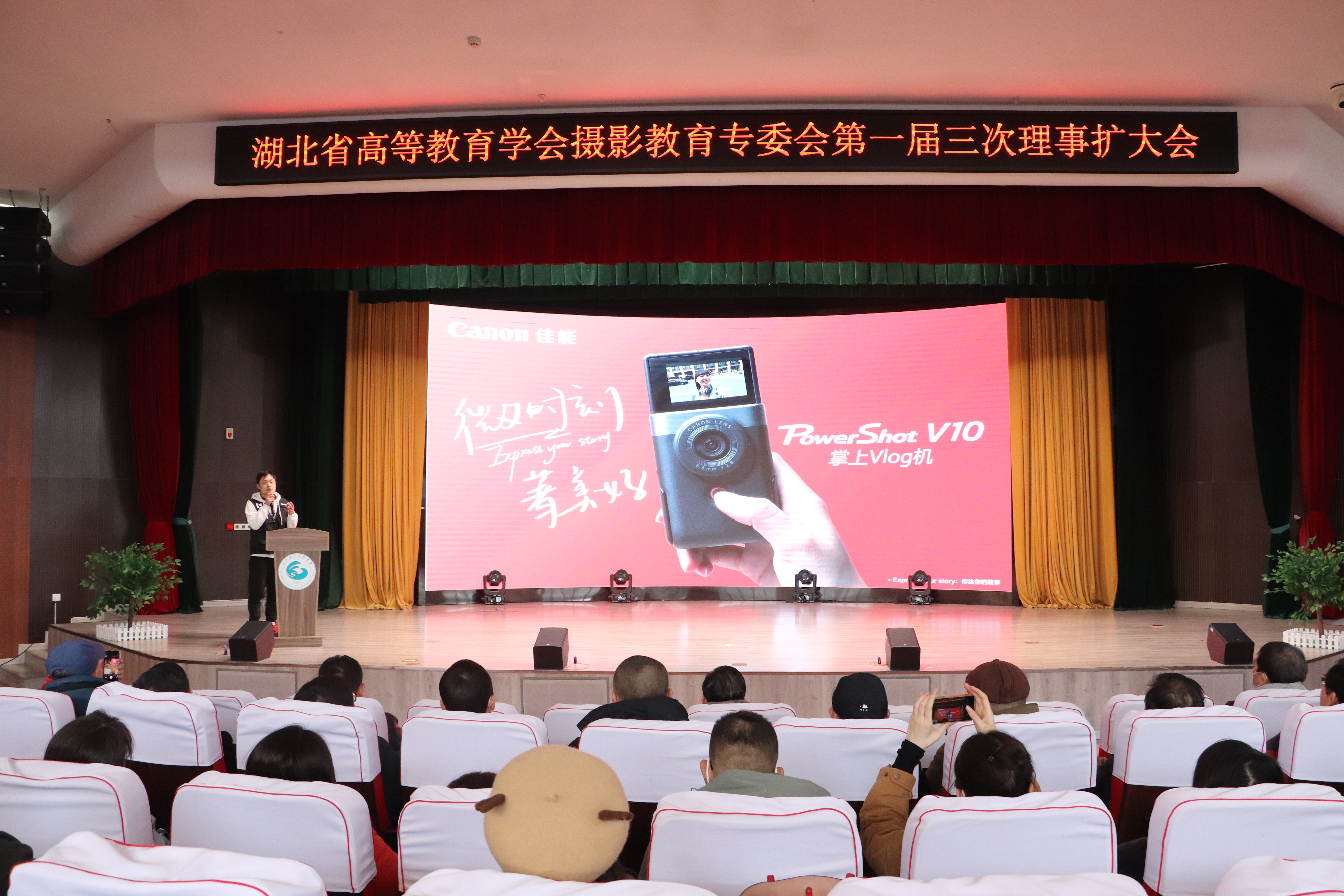 武汉咔拍数码有限公司汪春晖向大家介绍佳能新产品。他表示,新产品PowerShot V10相机的各个功能都进行了升级,克重、镜头、像素以及相机的便携性相比之前都有显著提升。