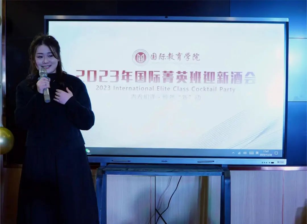 酒会伊始,国际菁英班的学姐代表邵文轩分享了她在国际菁英班的学习和生活经验,鼓励新生们要积极适应新的学习环境,把握机会,不断提升自己。