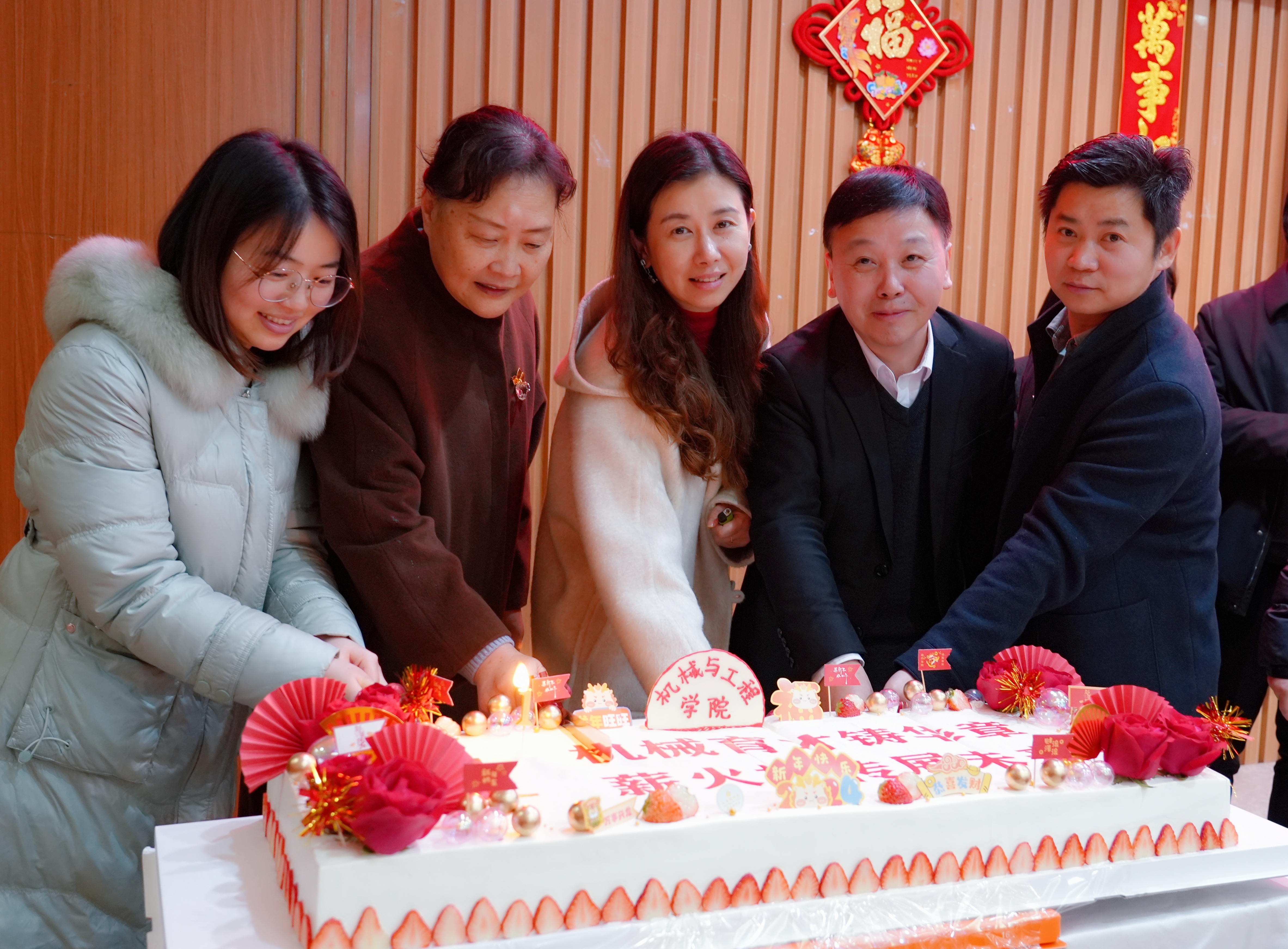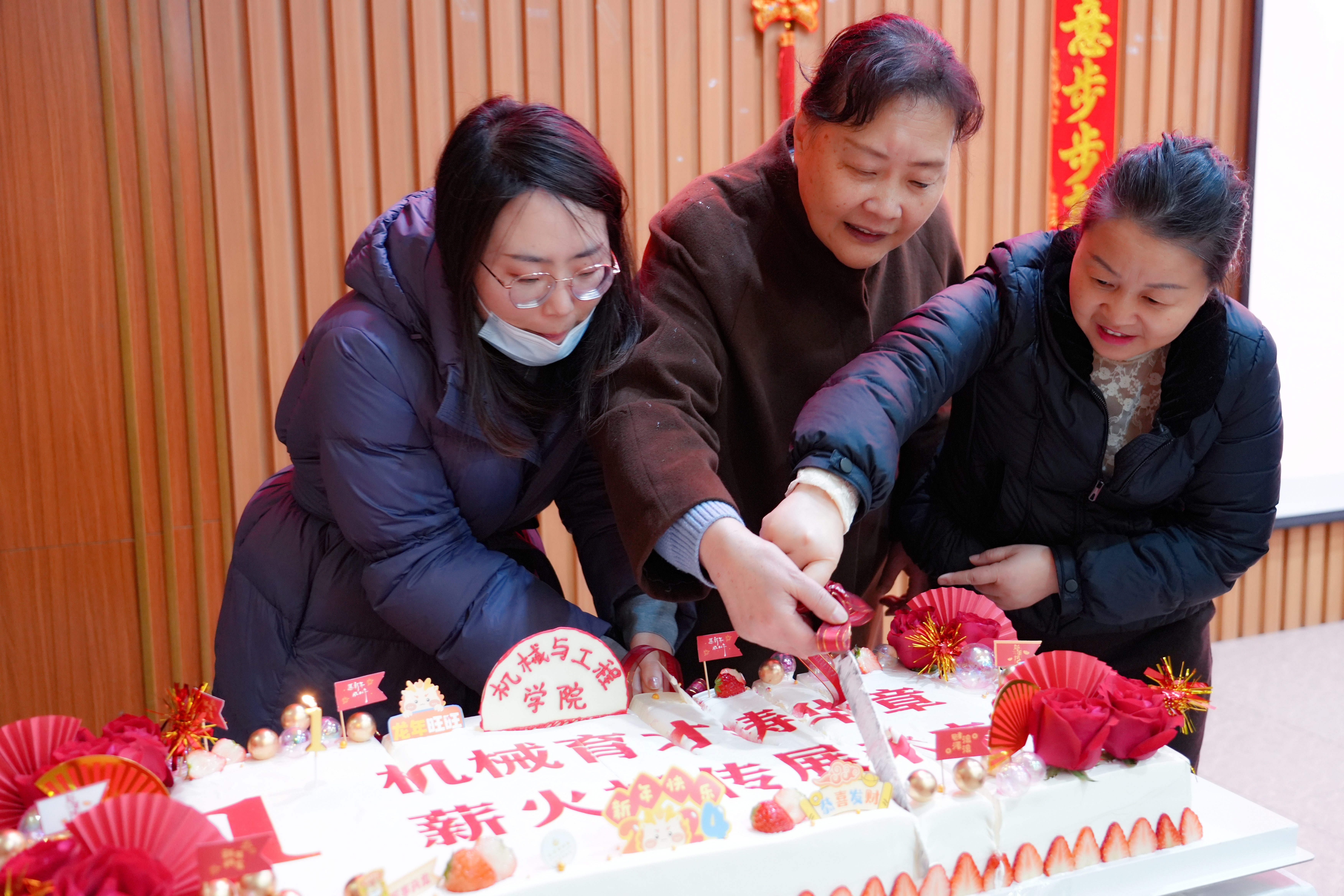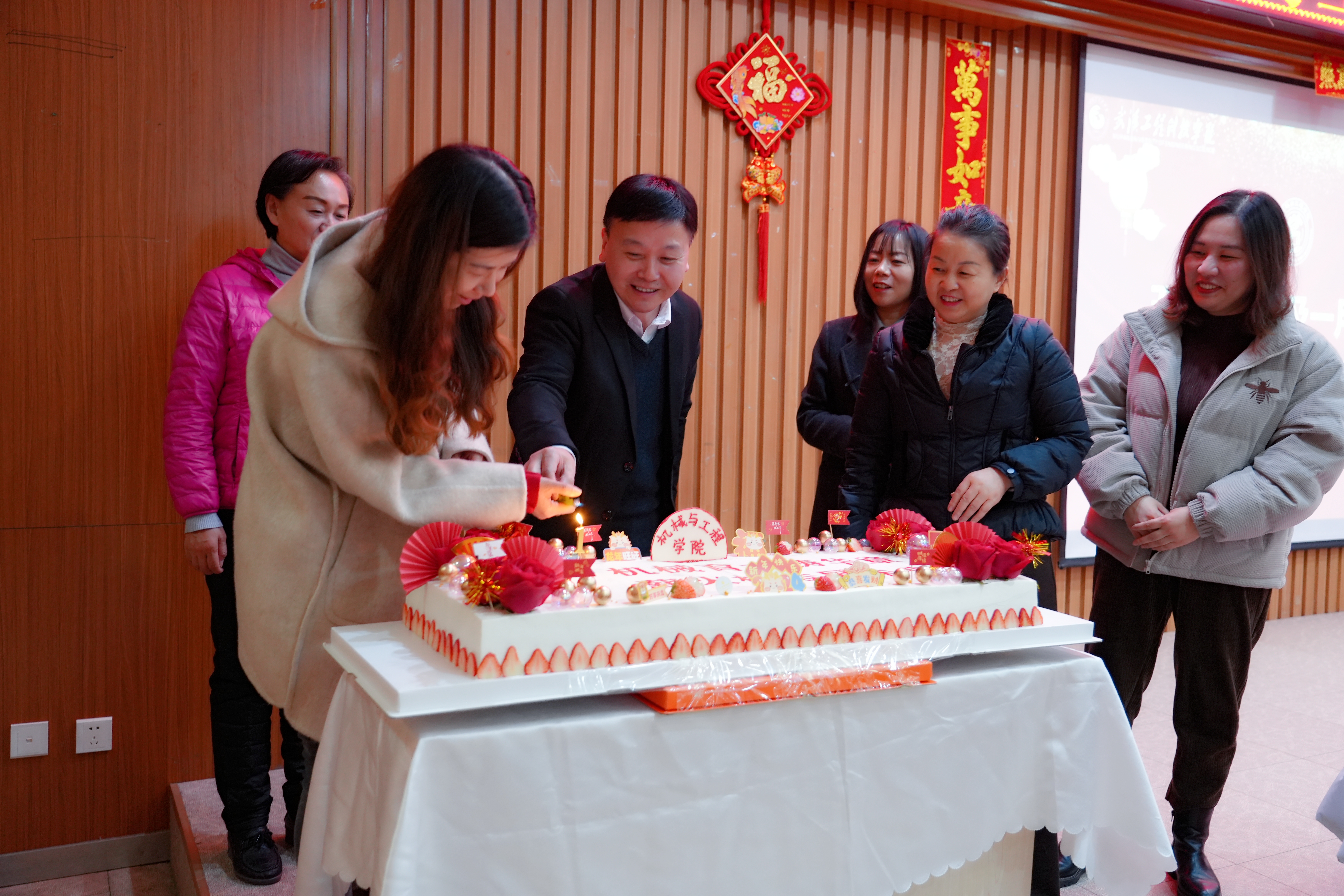 与会校领导共同点亮生日蜡烛、切生日蛋糕,祝福机械与工程学院以及学院一月份生日的寿星老师们生日快乐。