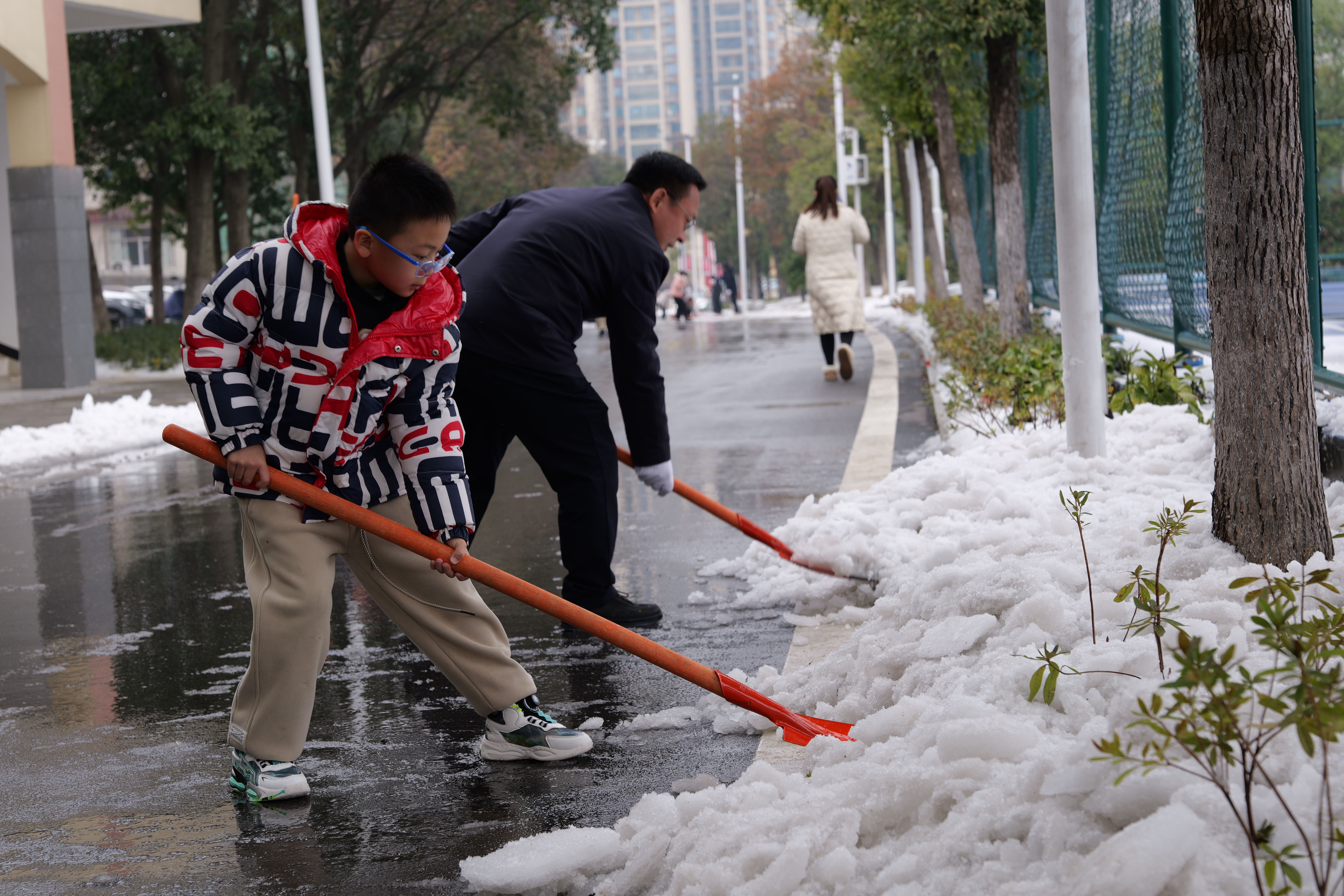 活动现场,大家分工协作,互相配合,各种扫雪工具齐上阵,天气虽冷,但大家热情不减。“我家是北方的,高中时经常铲雪,听到招募志愿者的消息时,就想着来帮个忙,为学校尽一份力。”2022级会计学专业的学生王浩然说。“作为学校的一份子,理应积极参加这样的活动,将校园的路扫干净,方便学生及时返校,以便后续顺利开展教育教学工作。”机械与工程学院实验中心教师李若岩说。学校财务处李珍带着她七岁的儿子也加入扫雪除冰工作中,“孩子很喜欢雪,在老家也经常一起铲雪,他听说要铲雪也跟着来了,这对他来说也是一次很好的锻炼。”李珍说。