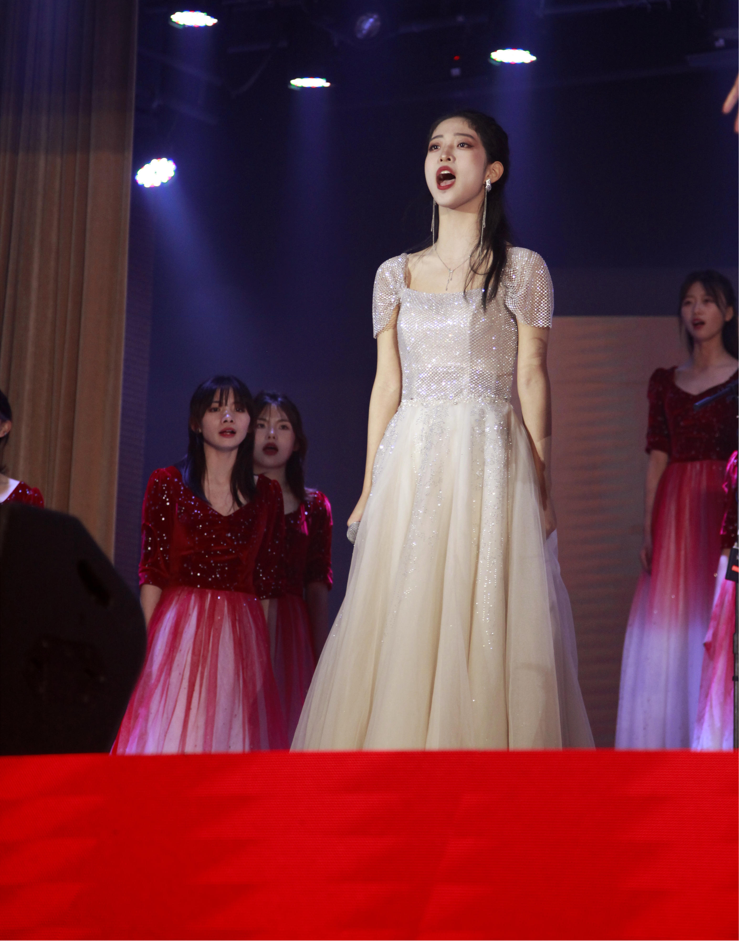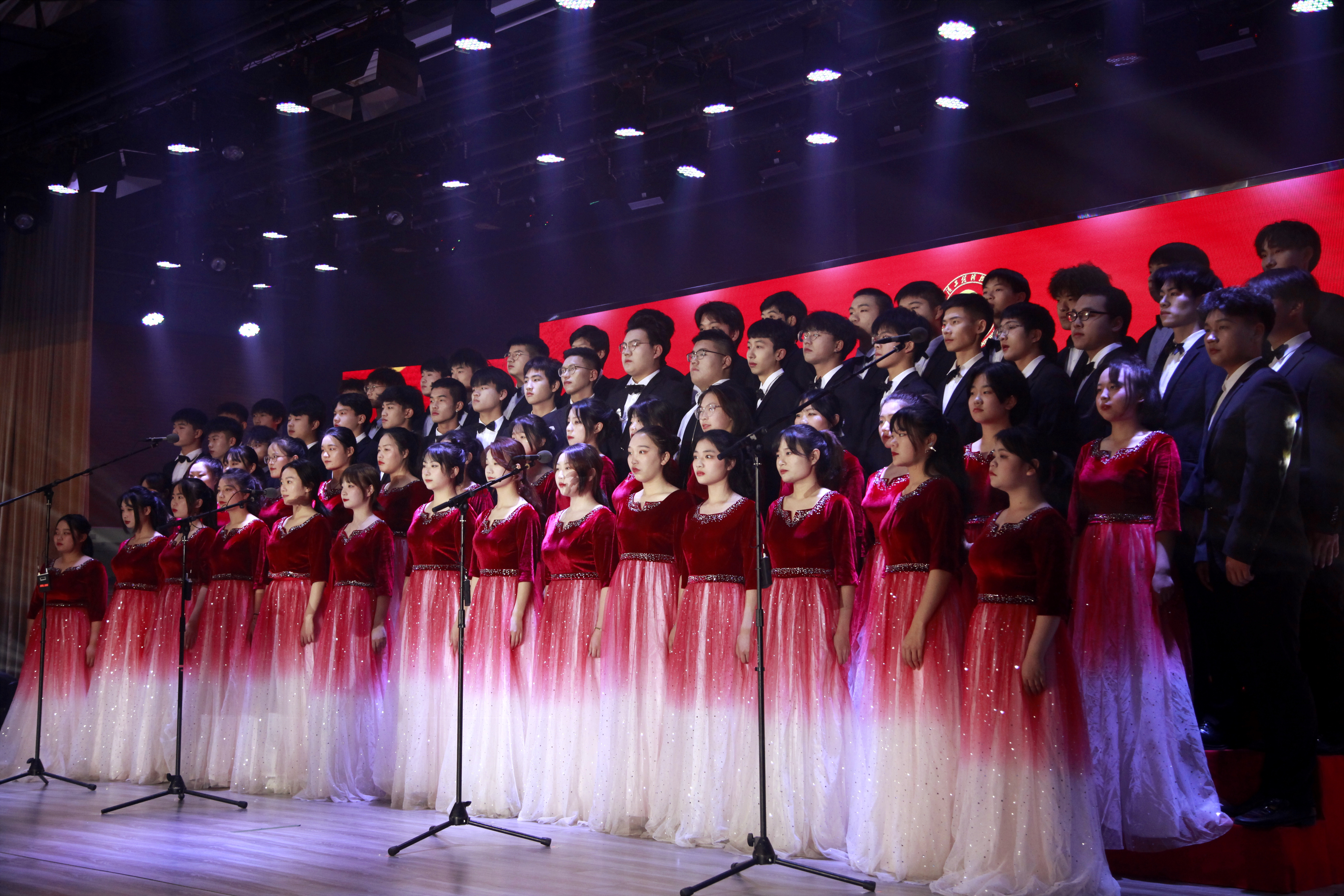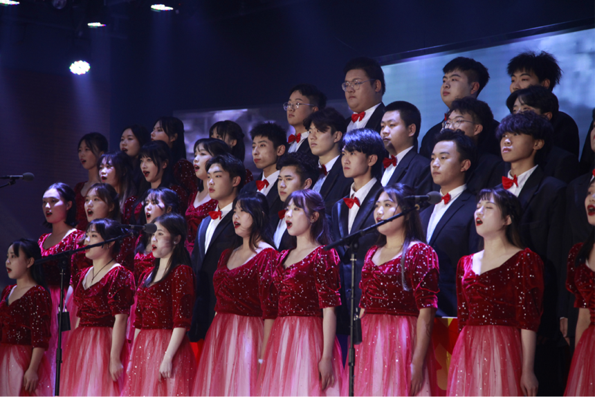 在红星合唱团揭牌仪式后,又由红星合唱团的同学们唱响了晚会第一声,带来了第一首合唱乐—《国际歌》。场下观众的心又一次被美妙且真诚的歌声牵动起来。